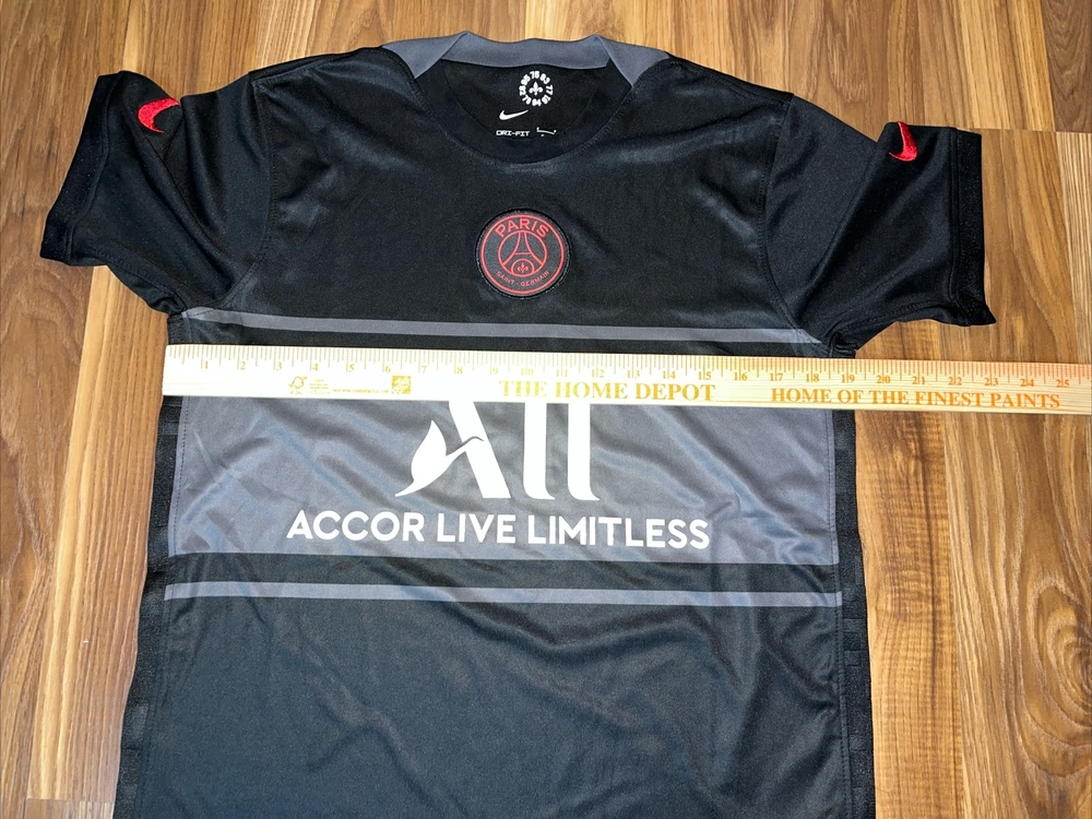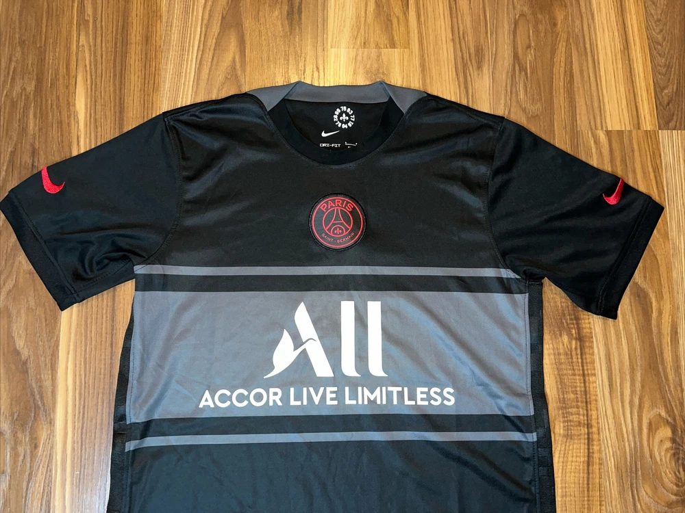 This Paris Saint-Germain 2021/2022 Nike Third Football Shirt in size small is the perfect addition to any soccer fan's collection. Made with high-quality materials and designed for comfort, this shirt is perfect for showing your support for the team during games or casual outings. Featuring the iconic Nike logo and the official Paris Saint-Germain team crest, this shirt is a must-have for any fan of the team. The black color adds a touch of style and sophistication to the shirt, while the gender-specific design ensures that it fits men comfortably. Whether you're watching the game from the stands or playing soccer yourself, this shirt is the perfect way to show your support for Paris Saint-Germain.