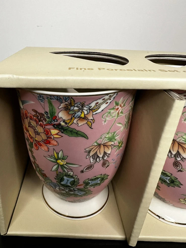 Elegant Dining with Park Chateau Fine Porcelain Mugs Add a touch of charm to your table with this Set of 2 Park Chateau Footed Mugs , featuring a delicate pink and multicolor floral design. Crafted from fine porcelain, these mugs are perfect for enjoying your favorite hot beverages in style. Whether for daily use or special occasions, these mugs elevate your tea or coffee experience with their beautiful design and quality craftsmanship. Key Features: Exquisite Design: Pink and multicolor floral pattern that adds elegance to any occasion Footed Base: Unique footed design provides a sophisticated touch to the mugs High-Quality Porcelain: Durable, smooth, and fine porcelain for everyday use Perfect Size: Ideal for tea, coffee, or any hot beverage Set of 2: Includes two mugs, perfect for sharing with a friend or loved one Great Gift Idea: An excellent choice for housewarming, birthdays, or special occasions Specifications: Brand: Park Chateau Material: Fine Porcelain Quantity: Set of 2 Mugs Design: Pink and Multicolor Floral Dimensions: Standard mug size Condition: New Park Chateau Footed Mugs Fine Porcelain Tea Mugs Multicolor Floral Mugs Pink Floral Mugs Set Elegant Footed Coffee Mugs Porcelain Mugs for Tea Set of 2 Fine Mugs for Gifts Floral Design Mugs