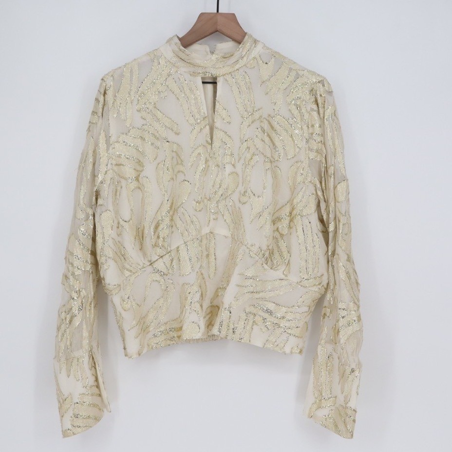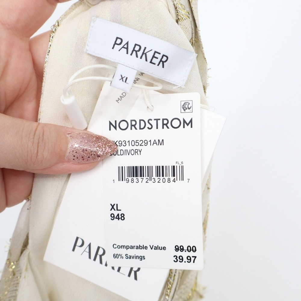 The Parker The Piper Top in Women's XL is a stylish and versatile blouse featuring a geometric pattern in gold and ivory colors. It has a mock neck with a keyhole cutout and smocked hem accents, adding a touch of detail to the design. This casual top is perfect for the spring and summer seasons, with a regular fit and easy-care machine washable fabric. The long sleeves and button closure make it suitable for everyday wear, while the modern outdoor theme adds a trendy flair to the overall look. Made by the brand Parker, this blouse is a chic addition to any woman's wardrobe. Measurements: * Chest: 23 in * Length: 22 in Department: Womens Style: Basic Type: Top Pattern: Floral Performance/Activity: Casual, Party/Cocktail Features: Comfort, Easy Care Occasion: Party/Cocktail Length: 22 in Closure: Pullover Chest: 23 in Keywords: Parker, Casual, Comfortable, Pullover, Party/Cocktail, Everyday Wear, Easy Care, Long Sleeve. All orders are shipped the same business day or the next business day. Thank you for supporting my small business.