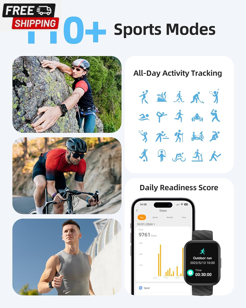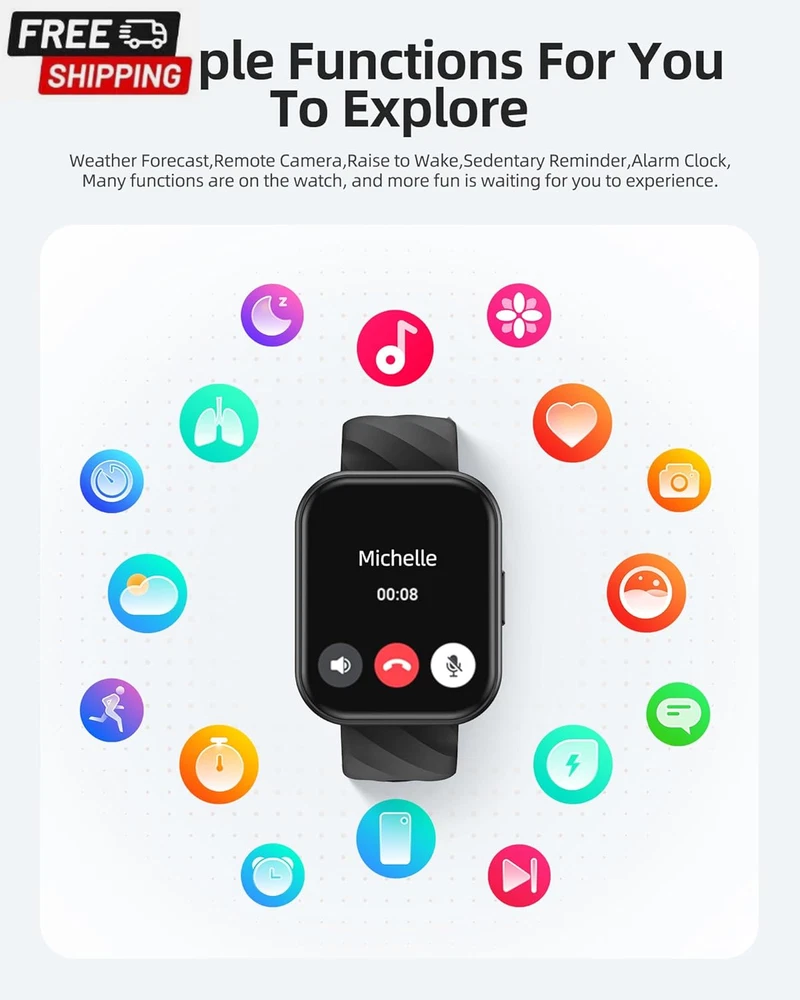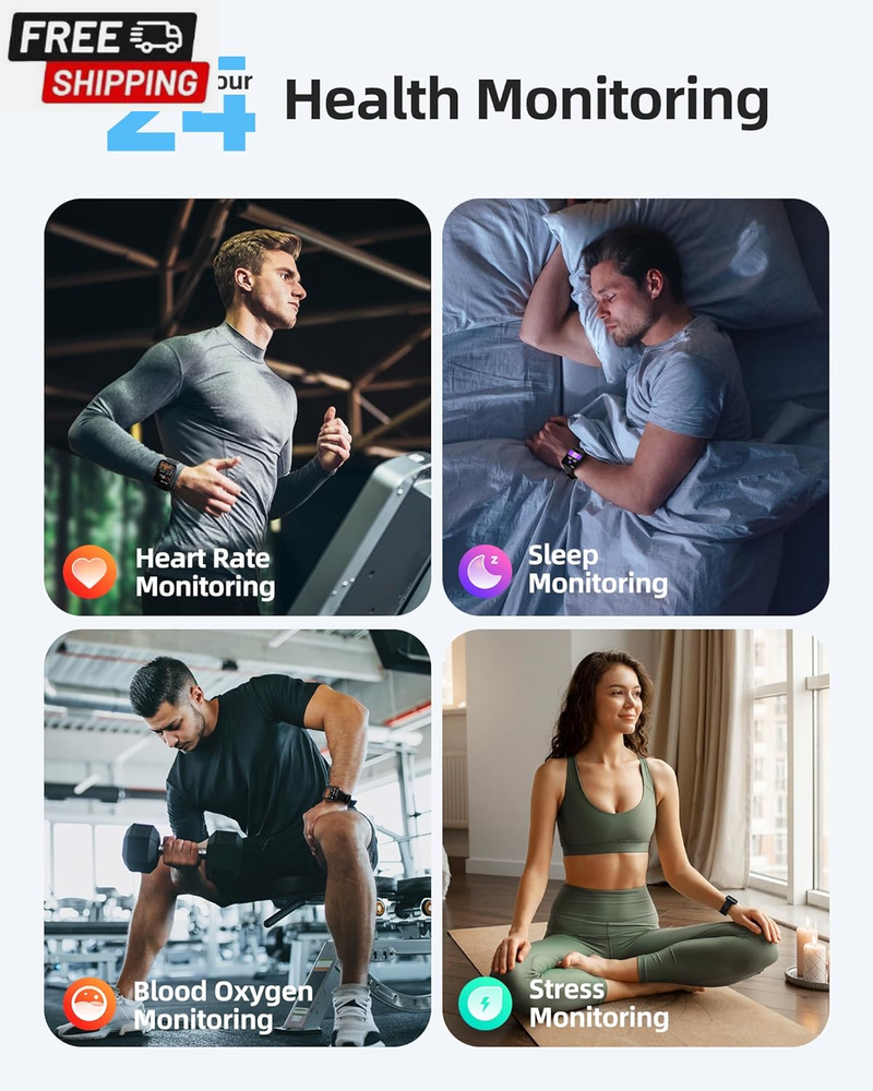 Fast Shipping On All Items 30 Days Money Guarantee Customer Support Excellent Service 100% Satisfaction Satisfaction Guaranteed Parsonver Smart Watch, 5ATM Waterproof Watch for Swimming, Fitness Activity Tracker with 110+ Sports Modes, Heart Rate/Sleep/Spo2/Calories Monitor, Pedometer, Fitness Watch for Android & Iphone, Black Specification Item model number FF2 Battery Capacity 320 Milliamp Hours Operating System Compatible with iOS 9.0/Android 6.0 or above Smartphones Battery Cell Composition Lithium Ion Color Black Memory Storage Capacity 512 MB Product Dimensions 9.84 x 1.5 x 0.43 inches Connectivity Technology Bluetooth Item Weight 37 Grams Manufacturer Parsonver Shape Square Wireless Communication Standard Bluetooth Standing screen display size 1.8 Inches Batteries 1 CR5 batteries required. (included) GPS No GPS Screen Size 1.8 Inches Special Feature function(f) {var _np=(window.P._namespace("DetailPageProductOverviewTemplatesJava"));if(_np.guardFatal){_np.guardFatal(f)(_np);}else{f(_np);}}(function(P) { P.when('A').execute(function(A){ A.on('a:truncate:po-attribute-truncate-2:updated', function(data) { var isTruncated = !data.truncateInstance.getIfTextFits(); var seeMoreElement = document.getElementById('po-attribute-see-more-id-2'); if(seeMoreElement) { seeMoreElement.style.display = isTruncated ? '' : 'none'; } }) }); })); 5ATM Waterproof for Swimming Monitor, 24H Heart Rate/Blood Oxygen(SpO2)/Sleep/Stress Monitor, 110 +Sports Modes, SMS, Text and App Smart Notifications, 200+ Custom Watch Faces, Multiple Sports Tracking, Stopwatch, Exercise Tracking, Alarm Clock, Music Control, Camera Control, Email Notifications, Weather, Compatible With iPhone and Android, Timer, Sedentary Reminder, Activity Data, Breathing Training Monitoring, Women Health Monitoring, Message Reminders, Find Your Phone, Exercise Records, Lightweight and Portable Design, Step, Calorie, and Distance Tracking, Daily Activity Tracking, Brightness Adjustment, Raise To Wake Feature, etc. See more Size 1.8" Item Description 【5ATM WATERPROOF SWIMMING WATCH – THE PERFECT SWIM TRACKER AWAITS, FOR SWIMMING & DIVING】Dive into performance with the Parsonver 5ATM Waterproof Swimming Watch—designed for serious swimmers and daily wear. With a 50m water resistance rating, it automatically tracks Butterfly, Backstroke, Breaststroke, and Freestyle, offering key swim metrics like stroke count, rate, and SWOLF. For best results, avoid using buttons underwater or wearing the watch in hot baths, saunas, or steam rooms. 【SMART WATCH FITNESS TRACKER WITH 110+ SPORTS MODES】Elevate your fitness journey with our versatile fitness watch, offering over 110 sports modes to suit every lifestyle, whether indoors or outdoors. Whether you enjoy walking, running, cycling, swimming, practicing yoga, or hitting the gym, this activity tracker watches your heart rate, steps, and calories burned, helping you make the most of every workout. Embrace the freedom to explore new activities and turn your daily efforts into meaningful progress. Stay motivated and connected to your health goals with a stylish sport watch that fits seamlessly into your life! 【24-HOUR ACCURATE HEALTH MONITORING & ALL-DAY ACTIVITY TRACKING】Unlock your health potential with the Smart Watch for Men and Women! This stylish heart rate monitor/sleep tracker provides real-time heart rate monitoring, blood oxygen measurement, and sleep analysis, keeping you informed about your wellness. Effortlessly track daily steps, calories burned, and activity time, while receiving insights into stress levels and sedentary alerts to stay active. Additionally, with specialized menstrual cycle tracking, women can manage their health with confidence. Don’t miss out—make the Parsonver Smart Health Watch your essential companion for a healthier, more vibrant life! 【CALL, TEXT, AND SMART MESSAGE NOTIFICATIONS】Stay effortlessly connected with incoming call notifications, SMS, emails, and real-time alerts from your favorite apps like WhatsApp, LinkedIn, Instagram, and Twitter, all seamlessly synced with your mobile app; enjoy the convenience of managing your communications directly from your wrist—easily reject calls without the need to reach for your phone. (Note: While you can decline calls on the watch, direct answering or replying isn’t available.) 【1.8-INCH VIBRANT HD TOUCHSCREEN WITH 200+ CUSTOMIZABLE WATCH FACES】Experience the future of smartwatch technology with the Parsonver smartwatch, featuring a stunning 1.8-inch HD touchscreen that delivers breathtaking visuals and an immersive experience. Enjoy crystal-clear visibility in any lighting condition and easily refresh your style with over 200 customizable watch face options. Plus, personalize your digital cool watch by uploading your favorite photos, making it a unique expression of your individual style. Stand out every day with Parsonver pedometer watch! 【EXPLORE MORE AMAZING FEATURE】This Step and Calorie Tracker Watch goes beyond simply monitoring your daily activities; it’s packed with a wealth of practical functionalities! Enjoy all-day activity tracking, workout logs, breathing exercises, women’s health monitoring, weather updates, music control, stopwatch, alarms, timers, camera control, brightness adjustment, sedentary reminders, phone finder, wrist-raise wake-up features, and more. It’s your personal health and lifestyle assistant, always by your side to help you manage your life and health, ensuring you stay energized and vital every day! 【EXTENDED BATTERY LIFE & BROAD COMPATIBILITY】Enjoy up to 7 days of use or 40 days on standby with a single charge—no more daily charging anxiety! Powered by a high-efficiency battery and fast charging. Smoothly syncs with Android 6.0+ and iOS 9.0+ smartphones for instant message and app alerts. Not compatible with tablets, computers, or any non-smartphone devices. Smart, stylish, and made to keep up with your lifestyle. 【24/7 FRIENDLY SUPPORT & THE PE