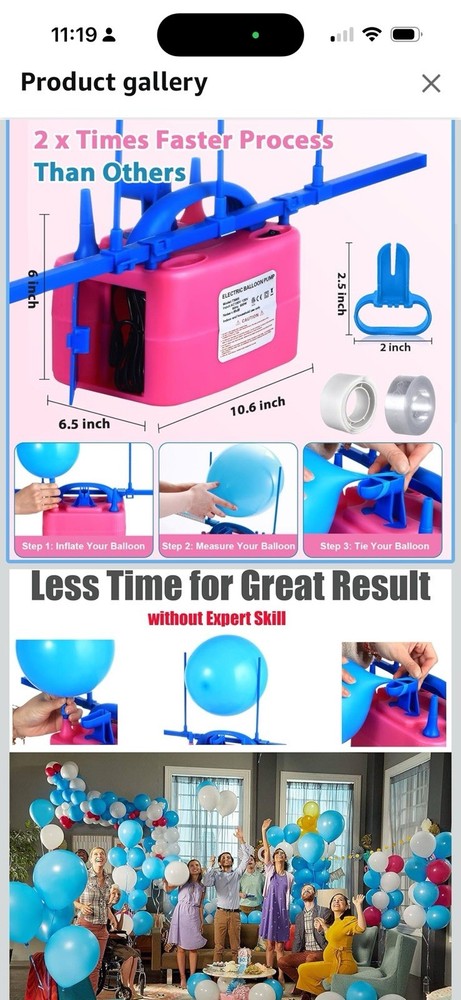 Party Zealot Electric Balloon Pump Pink Blue Dual Nozzles Balloon Sizer US Plug