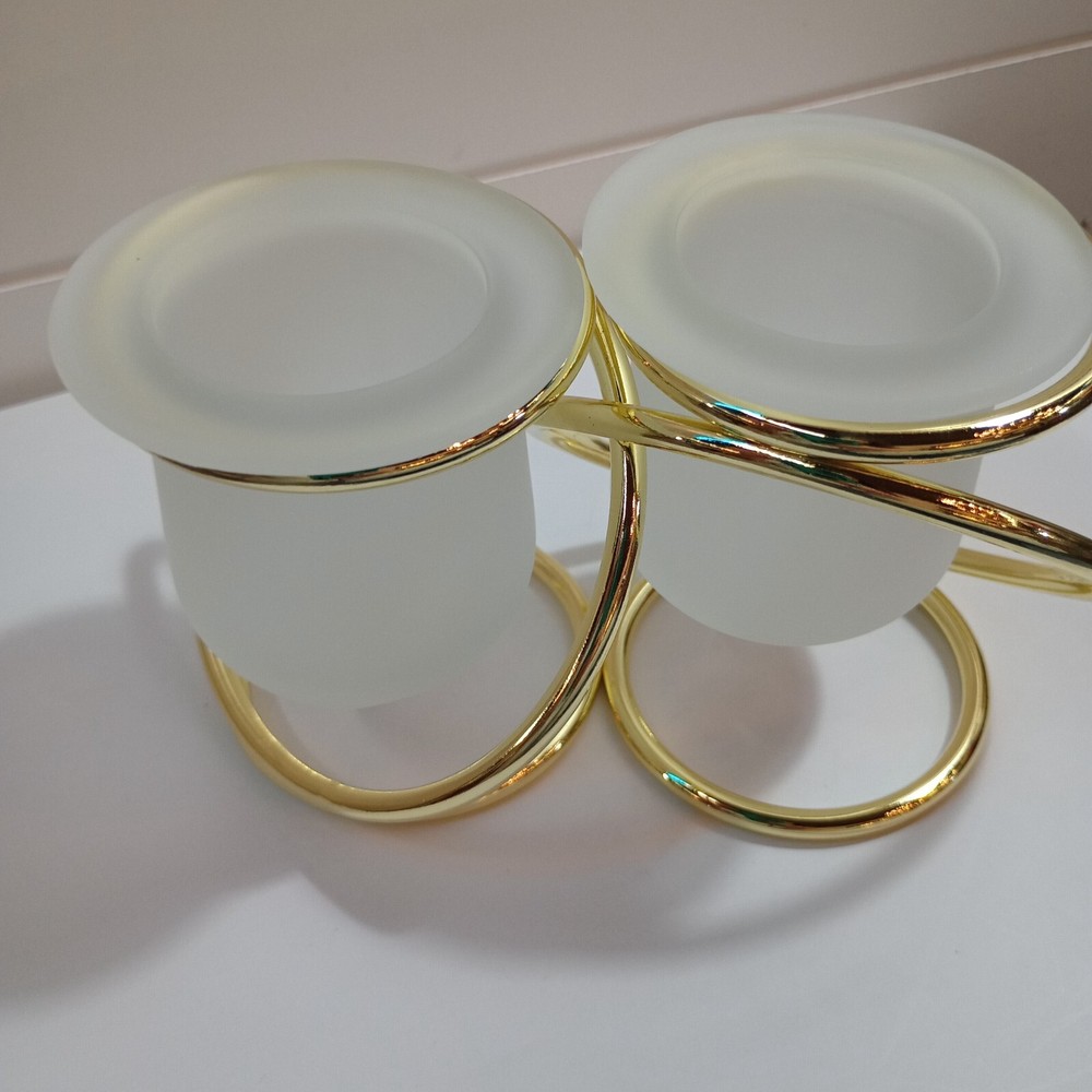 Elevate your home's ambiance with the PartyLite Gemini Candle Holder, an exquisite pair of frosted glass and gold metal votive holders. The contemporary design brings a touch of elegance to any setting, making them perfect for both casual and formal occasions. The holders' frosted finish adds a subtle texture that complements the gleaming gold color, ensuring they'll be a striking addition to your decor. This set comes with one set of two candle holders, allowing you to create a symmetrical or staggered display to suit your space. They're designed to accommodate PartyLite's Gemini fragrance sampler jars, but you can also use them with other standard votive candles for a versatile lighting solution. Whether you're setting the mood for a relaxing evening or adding a sophisticated flair to your living room, these candle holders are a thoughtful and stylish choice.