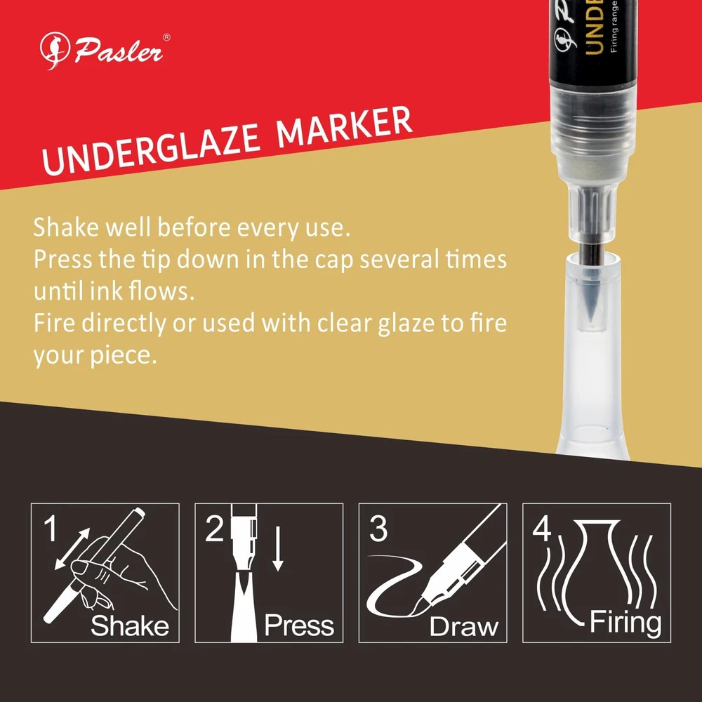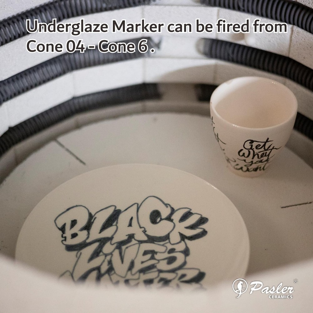 About this item SMOOTH & PRECISE APPLICATION: The soft tip design glides effortlessly on pottery bisque , allowing for smooth, even lines and detailed artwork. Ideal for both beginners and experienced ceramic artists. HIGH-QUALITY WATER-BASED FORMULA: This opaque underglaze marker features a blendable, quick-drying water-based formula , giving you vibrant color control and clean results on ceramic surfaces. EASY TO CLEAN & MAINTAIN: The marker tip can be rinsed with water to keep it clean and in perfect condition for continued use — no clogging or hardening. FUN & VERSATILE FOR CREATORS: A fluid, fun, and creative tool , perfect for decorating, outlining, and personalizing pottery, ceramic, or clay pieces before firing. FIRING & FINISH DETAILS: Can be fired directly or used under a clear glaze for a glossy finish. Suitable for Cone 05 (1046°C) to Cone 6 (1222°C) firings. Food-safe after glazing , making it ideal for functional and decorative pottery.