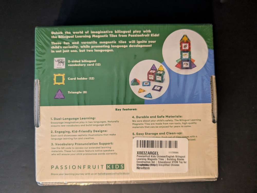 Passionfruit Kids Chinese / English Bilingual Learning Magnetic Tiles The pictures are a BIG part of the description so please look at them closely. Please inspect and zoom in on all pictures for full inspection. I try to ship within one business day of receiving payment Monday – Friday 11:00 am. After Friday 11:00 am all item s will most likely ship Monday. Shipping is via United States Postal Service unless otherwise stated. Professional packing supplies (Bubble Wrap and or Styrofoam) are used when shipping fragile items. I want you to be happy with your purchase. Please ask question if you have them. I try to reply promptly or within a few hours. I try to describe all items to the best of my ability. I purchase all my items from estate sales, antiques shops, auctions, liquidations, consignment, yard sales etc. I love purchasing vintage items but some of my items are open box items from returns, overage sales etc. I do my best at inspecting and evaluating all the items I sell. The pictures are a BIG part of the description so please look at them closely. I love great deals and passing those on to others. Thanks for looking and please check out my other listings for more great stuff at great prices. Lots more to be added in coming days and weeks.