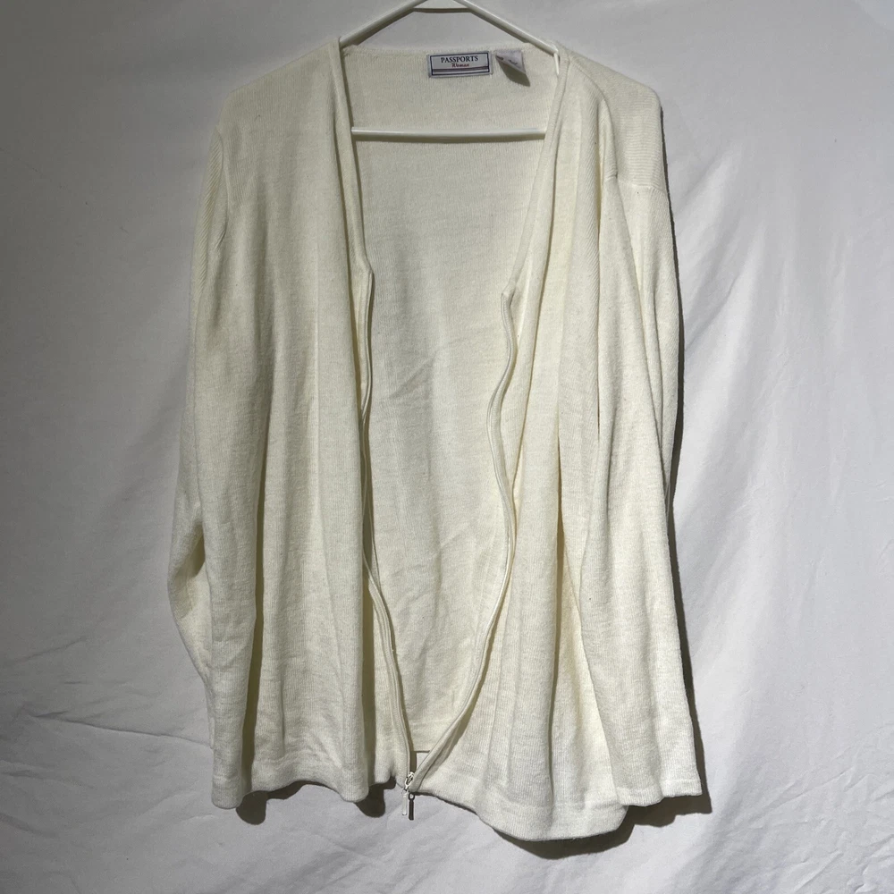 Passport Womens Size 1X Long Sleeve Zip Cardigan Over Shirt Top White