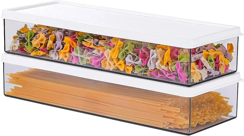 Store New Arrivals Add to Favorite View Feedback Contact Pasta Containers for Pantry 2Pcs, Spaghetti Storage Conainer with Lids, Noodle Organizer with Measuring Hole Storage for Pasta, Flour, Sugar and Noodles Description Closure Type Circles Item Dimensions L x W x H 11.6"L x 3.7"W x 2"H Capacity 1.1 Liters Item Volume 1.1 Liters Package Quantity 1 Is the item dishwasher safe? Yes Material Features Food Grade Material Feature Food Grade Recommended Uses For Product Pasta, Noodles Is the item microwaveable? No Additional Features stackable Item Form rectangular Product Dimensions 11.6"L x 3.7"W x 2"H Product Care Instructions Dishwasher Safe HELP ORGANIZE YOUR KITCHEN AND REFRIGERATOR : These pasta containers are rectangular and designed to save space. They are stackable and fit easily into refrigerators and cupboards to keep your kitchen organized and free up pantry space. SAFE & TRANSLUCENT MATERIAL: Spaghetti storage containers is made of high-quality food-grade plastic, so you can see food more clearly. Spaghetti jar sets is BPA free, and does not contain harmful substances. EASY TO CLEAN AND WASH: Easy to open or close storage capacity safe, tested and container safe in refrigerator, microwave and dishwasher. HUMANIZED LID DESIGN : The lid is made of soft plastic. You can easily open the lid. There are two circles on the bottom of the lid that help you measure the pasta. WIDELY USED IN KITCHEN: The plastic box is good for storing foods such as noodles, meat, eggs, fruits, beans, cookies, flour, spices and other kitchen staples. Ideal for kitchen, pantry, cupboard food storage. Product Description Making Pantry Organization Easy Dry food usually comes in paper or plastic bags, and once they are opened, they can spill on kitchen cupboards or pantry shelves. Where food storage containers can change that. They help organize cabinets, save space and prevent food spills. Specifications: Material: High-quality Plastic Capacity: 1.1L Size: 29.5 x 9.5 x 5cm / 11.6 x 3.7 x 2inch Feature: Tailored for all types of pasta. Made of high-quality food grade plastic, BPA-Free, non-toxic and safe from any harmful materials. Plastic products are not as fragile as glass and are easier to carry. Safe and Transparent Material: The stacked design saves space and is easy to place. Clear plastic construction lets you identify contents at a glance. Practical Gifts For The Kitchen: Our food containers not only can be used by yourself, but also as a gift to your relatives and friends. ABOUT US We offer the best prices around on high quality products. Our E-store includes media such as books, movies, music and games while offering electronics, toys, sporting apparel, clothing, tools, general home, garden items and more. SHIPPING We are always working hard to ensure your package arrives as soon as possible. Please understand that some factors like weather, high postal traffic, and the performance of shipping companies are outside of our control. We offer free shipping to the lower 48 states and ship within 2 business days of payment, usually sooner. We do not accept P.O. Boxes. Please provide a physical address. For shipping outside of the continental USA, we only use eBay's Global Shipping Program.The item is shipped to KY and then sent to the rest of the world. International customers are responsible for all duties and taxes. Continue to check out in order to calculate costs for shipping the item to your country. Messages regarding eBay's Global Shipping Program MUST be directed at eBay EXCLUSIVELY. RETURNS We offer a 30-Day Return Policy on items which you are not completely satisfied with. You have the option for a full-refund or an exchange of the item. No returns are available on items shipped outside of the USA. PAYMENT We accept PayPal. CONTACT US This page content is yet to come Please ad us to your favorite seller and visit again later Thank You CUSTOMER SATISFACTION We try our very best to make sure every customer is completely satisfied. If there's a problem, message us! We're happy to help. WE ACCEPT Copyright © 2021 AutoDS. | All Rights Reserved