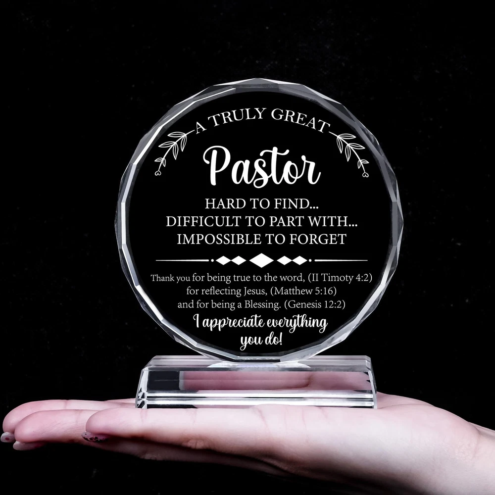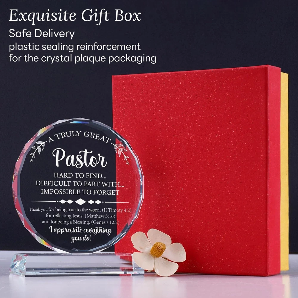 🎁Appreciation gifts for pastor - This pastor's crystal plaque with words of gratitude printed can be a Christian prayer gift, religious gift, birthday gift, or preacher retirement gift. It is a perfect gift for Pastor Appreciation Day and the pastor's retirement party! 🎁 Words Carving Techniques and Materials - Words are printed between the crystal, therefore there's no risk of the words fading away or being rubbed off. The plaque is Made of high-grade crystal, the surface is very smooth and has a sense of luxury. 🎁 The Design Inspiration for Pastor Gifts - White crystal is known as the "Crystal King", symbolizing purity, justice, and selflessness, just like your pastor, guiding everyone with a pure heart, facing the world with a just attitude, and selflessly dedicating your love and care. 🎁 Packaging and Size - The gift box that comes with this pastor gift is equally exquisite. The box is made of high-quality cardboard material, with red and yellow as the main colors, adding a sense of nobility and luxury to the gift. Product size: length 3.4in, height 4.45in, thickness 1.37in. 💕 Thoughtful Service - We high-quality products and satisfactory service. We use plastic sealing reinforcement for the crystal plaque packaging to ensure safe arrival. If you have any questions, please feel free to us at any time! We support free replacements for any defects caused during the production and delivery process.