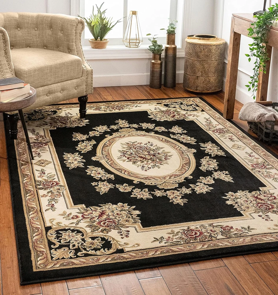 Store New Arrivals Add to Favorite View Feedback Contact Pastoral Medallion Black French European Formal Traditional Area Rug (5'3" X 7'3") Easy to Clean Stain/Fade Resistant Modern Contemporary Floral Thick Soft Plush Living Dining Room Rug Description Item model number P-36335 Style French Weave Type Knotted Pattern Floral Age Range (Description) Adult Country of Origin Turkey Is Stain Resistant Yes Theme Floral,Medallion,Contemporary,Modern,Pastoral Number of Pieces 1 Room Type Kitchen, Bedroom, Living Room, Home Office, Dining Room Material Polypropylene Model Name Pastoral Seasons All seasons Rug Form Type Area Rug Item Thickness 0.8 Inches Indoor/Outdoor Usage Indoor Water Resistance Level Water Repellent Is Autographed No Item Weight 19 Pounds Pile Height Medium Pile Construction Type Machine Made Occasion Formal Events, Housewarming, Wedding Special Feature Fade Resistant, Stain Resistant Color Black Shape Rectangular Back Material Type Jute Recommended Uses For Product Living Room, Dining Room Product Dimensions 87"L x 63"W Size 5'3" x 7'3" Thick, plush 0.5" pile height. 100% polypropylene power loomed in Turkey. Stain resistant and fade resistant. 100% jute backing is safe for wood floors. Extremely durable and very easy to clean, made to last for years. Traditional, formal, European, French medallion with floral border pattern. Size: 5'3" x 7'3" Color: Black, ivory, and beige with hints of red and green. Luxury, handmade feel at machine made prices. Product Description ABOUT US We offer the best prices around on high quality products. Our E-store includes media such as books, movies, music and games while offering electronics, toys, sporting apparel, clothing, tools, general home, garden items and more. SHIPPING We are always working hard to ensure your package arrives as soon as possible. Please understand that some factors like weather, high postal traffic, and the performance of shipping companies are outside of our control. We offer free shipping to the lower 48 states and ship within 2 business days of payment, usually sooner. We do not accept P.O. Boxes. Please provide a physical address. For shipping outside of the continental USA, we only use eBay's Global Shipping Program.The item is shipped to KY and then sent to the rest of the world. International customers are responsible for all duties and taxes. Continue to check out in order to calculate costs for shipping the item to your country. Messages regarding eBay's Global Shipping Program MUST be directed at eBay EXCLUSIVELY. RETURNS We offer a 30-Day Return Policy on items which you are not completely satisfied with. You have the option for a full-refund or an exchange of the item. No returns are available on items shipped outside of the USA. PAYMENT We accept PayPal. CONTACT US This page content is yet to come Please ad us to your favorite seller and visit again later Thank You CUSTOMER SATISFACTION We try our very best to make sure every customer is completely satisfied. If there's a problem, message us! We're happy to help. WE ACCEPT Copyright © 2021 AutoDS. | All Rights Reserved