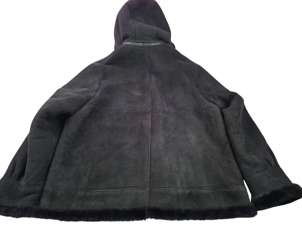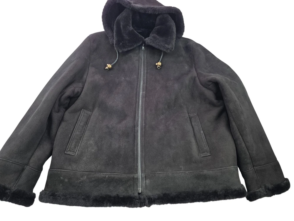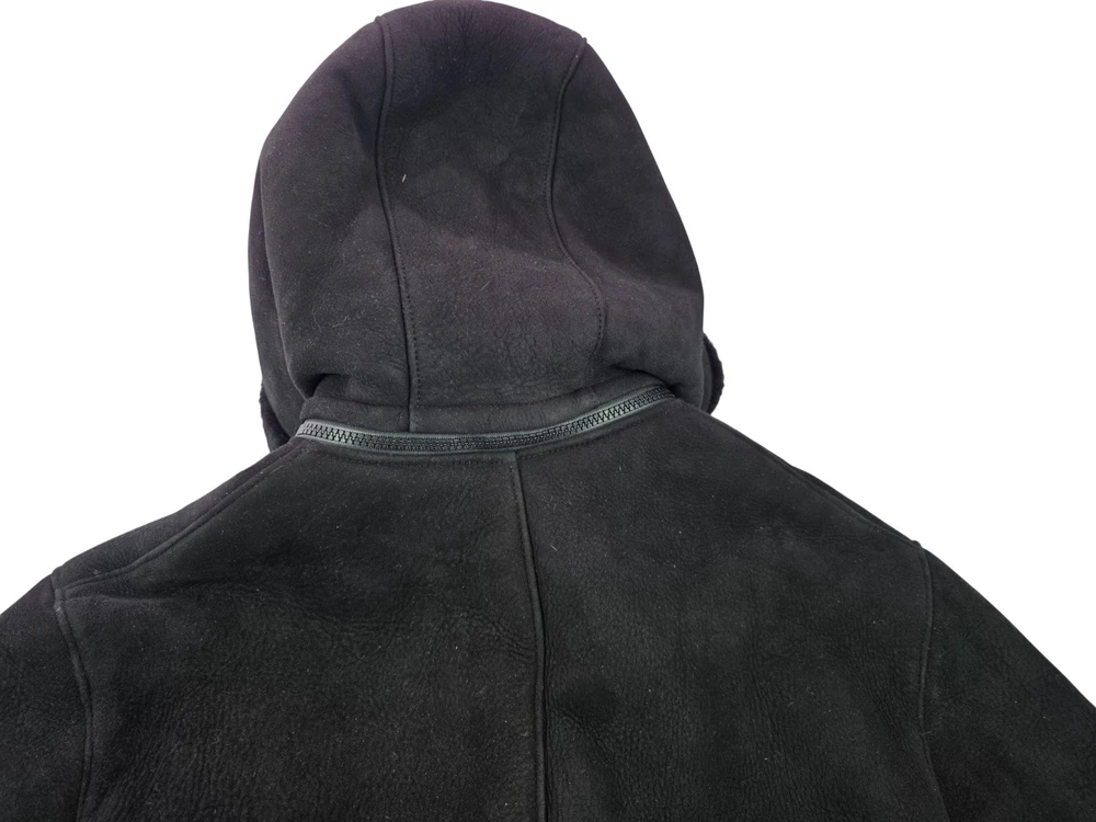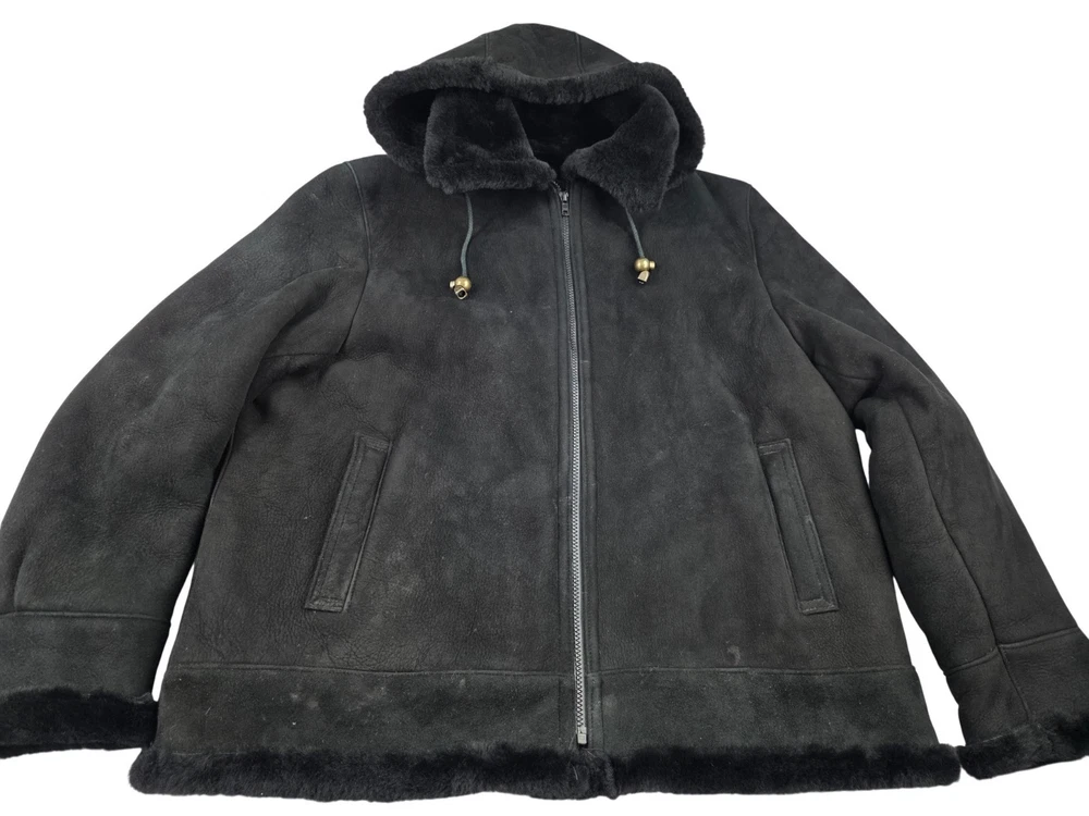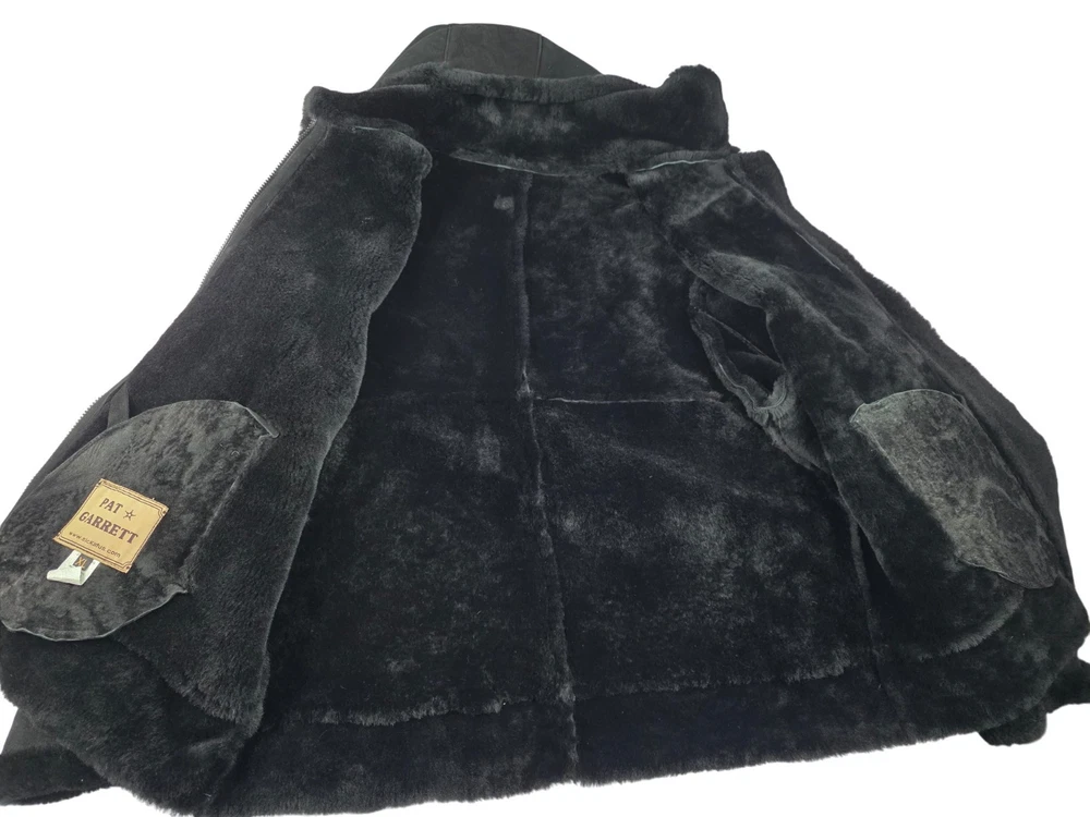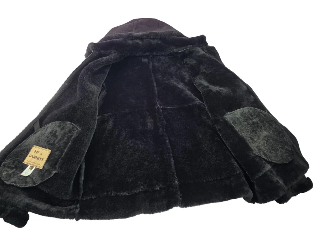 Available for sale is a very nice Men's Pat Garrett Leather Shearling Sheepskin Hooded Bomber Zip Jacket in size XL (check below measurements). This is a very beautiful US-made Pat Garrett Leather Shearling Bomber Full Zip jacket that is in a beautiful black color with black sheepskin lined fur on the interior. This jacket is very thick and warm and is of exceptional quality, made in the United States by Pat Garrett whose quality compares to the best jackets by Overland, Milano, Schott, and other brands. The jacket comes with a metal zipper, and two front pockets. This jacket is in very good shape with very minor wear on the exterior with a few small marks. The jacket has no holes, tears, odors, stains, or major flaws. Please check the measurements below. Measurements: Shoulder: 19" Chest: 24" Sleeve: 25.5" Length: 29" Payment: eBay Payments and PayPal. Shipping: We ship using USPS Ground Advantage or USPS Priority Mail and shipping is free to all 50 states. We also offer international shipping using eBay's International Shipping service. Returns: Please note we describe all items as carefully as we can and we only accept returns if an item was misrepresented in some way.