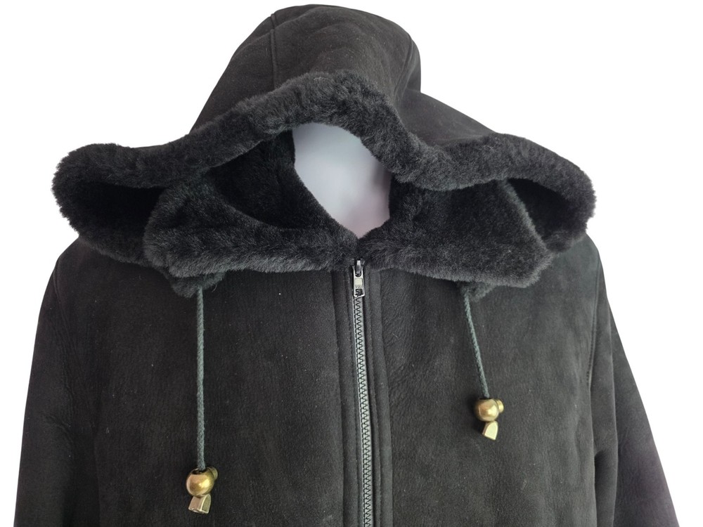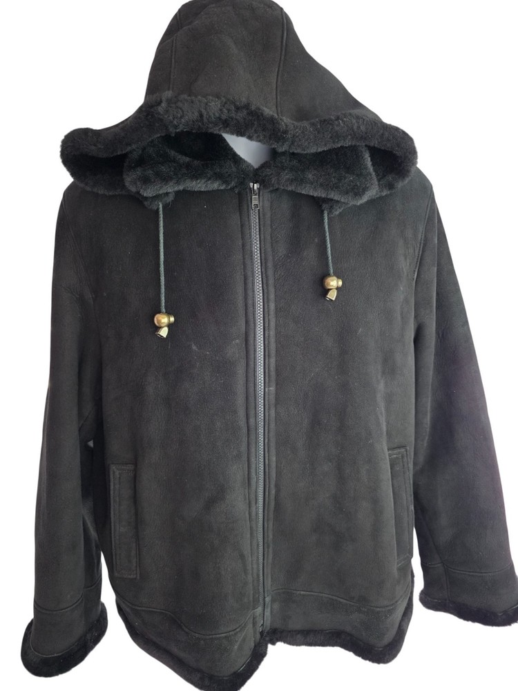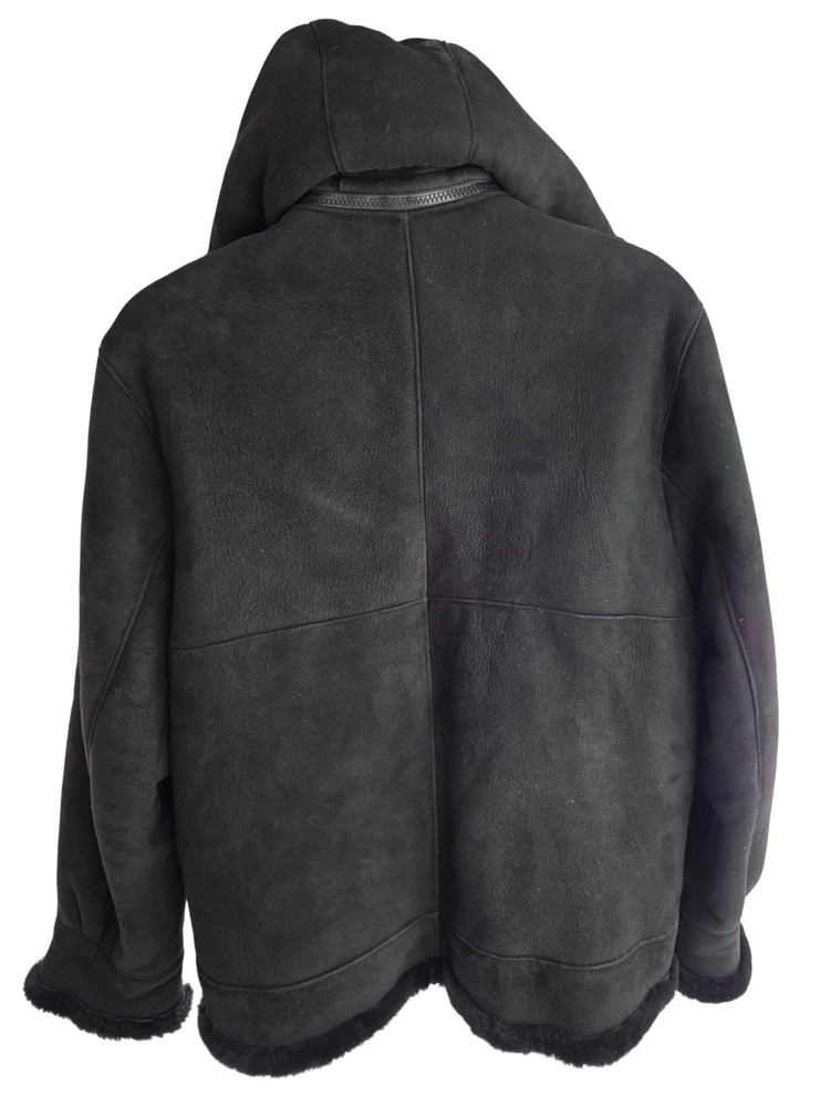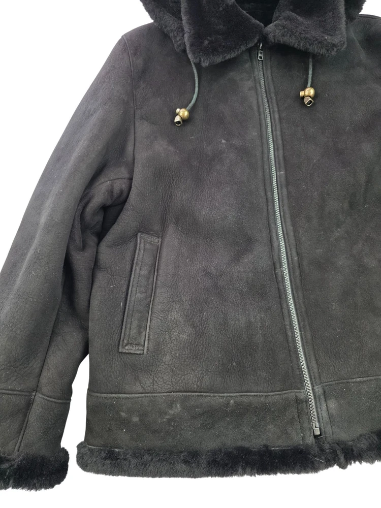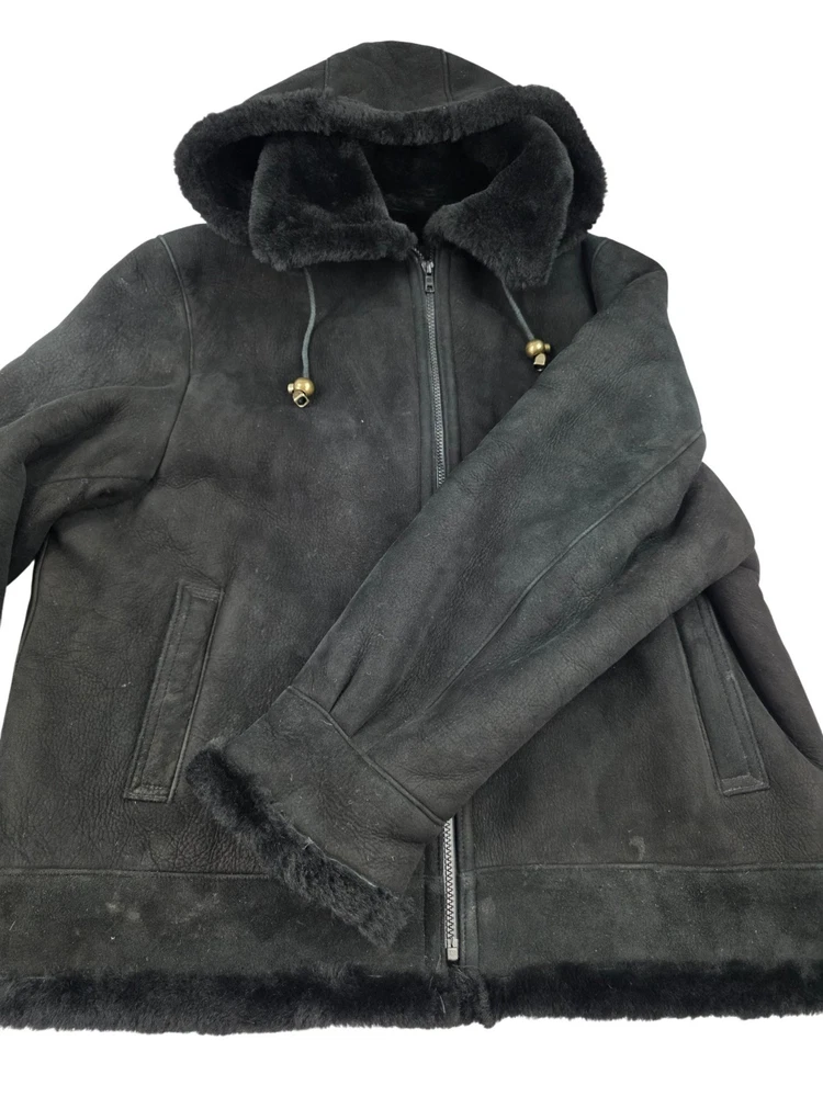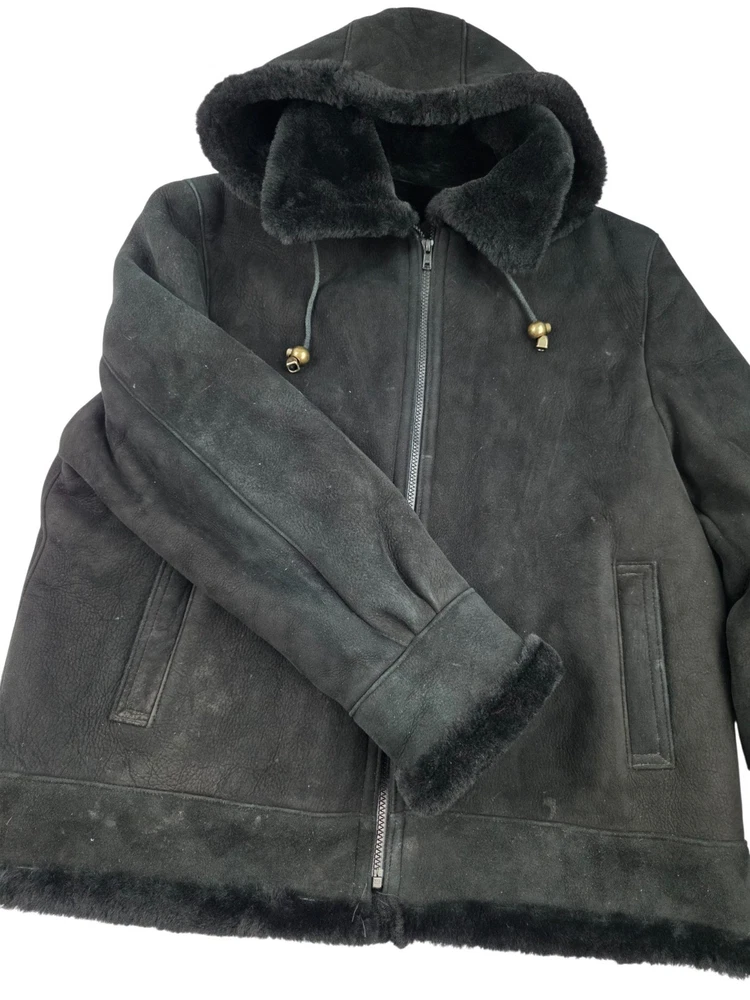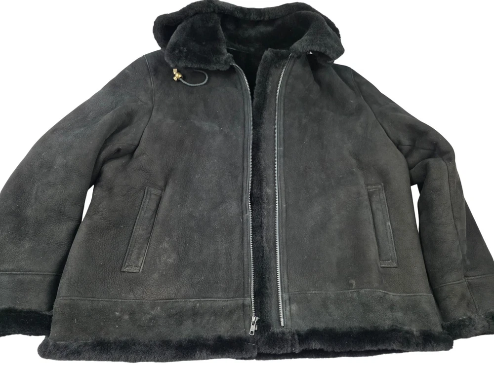 Available for sale is a very nice Men's Pat Garrett Leather Shearling Sheepskin Hooded Bomber Zip Jacket in size XL (check below measurements). This is a very beautiful US-made Pat Garrett Leather Shearling Bomber Full Zip jacket that is in a beautiful black color with black sheepskin lined fur on the interior. This jacket is very thick and warm and is of exceptional quality, made in the United States by Pat Garrett whose quality compares to the best jackets by Overland, Milano, Schott, and other brands. The jacket comes with a metal zipper, and two front pockets. This jacket is in very good shape with very minor wear on the exterior with a few small marks. The jacket has no holes, tears, odors, stains, or major flaws. Please check the measurements below. Measurements: Shoulder: 19" Chest: 24" Sleeve: 25.5" Length: 29" Payment: eBay Payments and PayPal. Shipping: We ship using USPS Ground Advantage or USPS Priority Mail and shipping is free to all 50 states. We also offer international shipping using eBay's International Shipping service. Returns: Please note we describe all items as carefully as we can and we only accept returns if an item was misrepresented in some way.