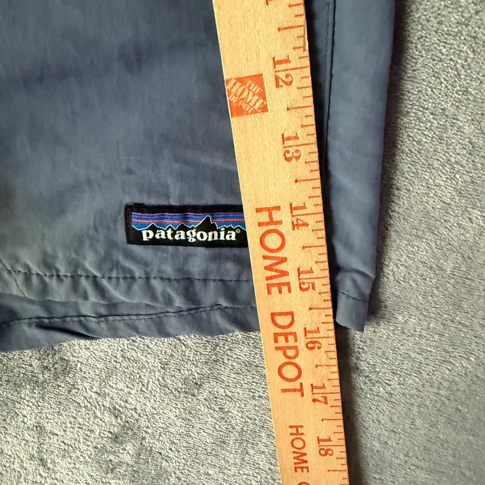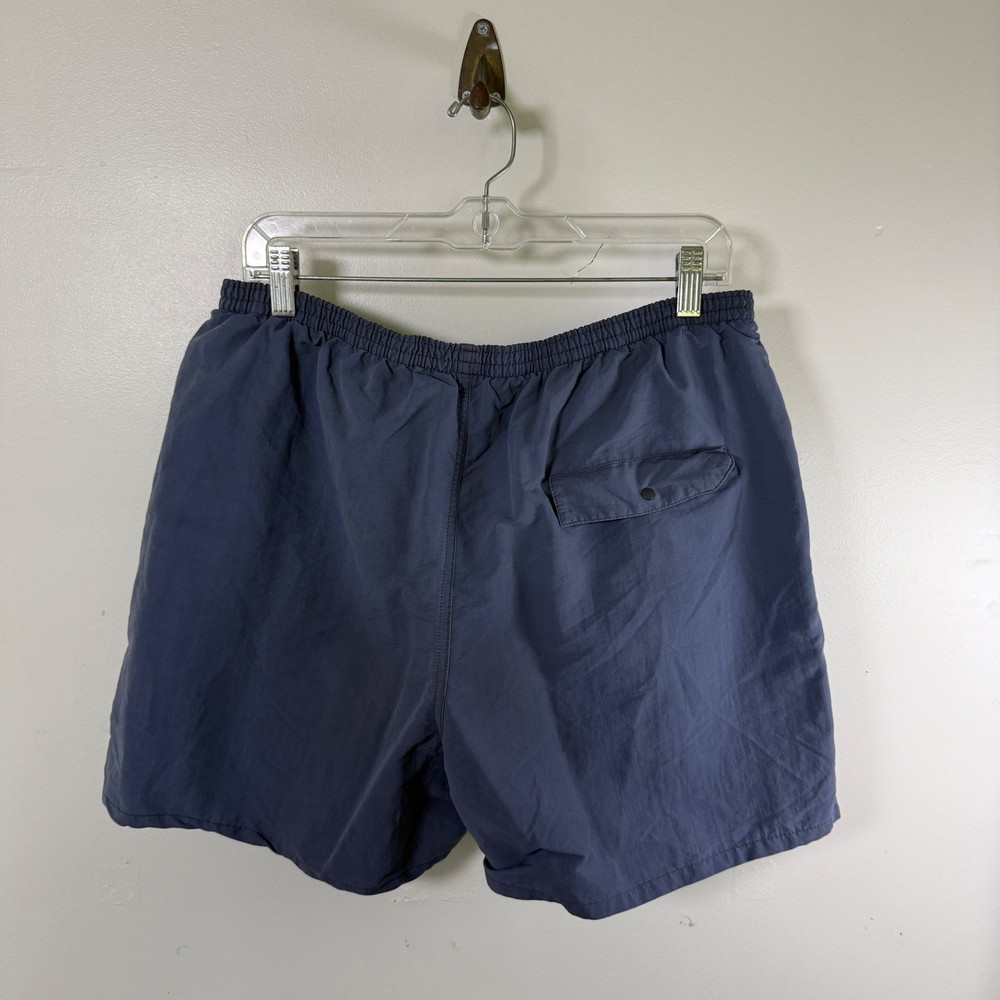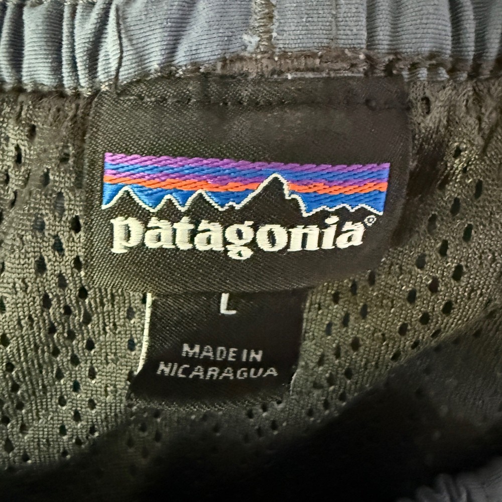 Patagonia Baggies Shorts in Forge Grey, size Large. These are the essential 5-inch inseam version built from rugged, quick-drying recycled nylon with a mesh liner. Features a comfortable elastic waistband with internal drawstring, vertical side pockets designed to reduce drag in the water, and a secure rear snap pocket. The fabric has a soft, broken-in feel while remaining durable for hiking, swimming, or daily wear. Measurements: • Waist: 16" (32" doubled) • Inseam: 5" • Length: 16" Keywords: boardshorts, trunks, swim, hiking, outdoor, gorpcore, summer, water, beach, surf, recycled, athletic, gym Fast shipping · Fair prices · Returns accepted · Reasonable offers always welcome.