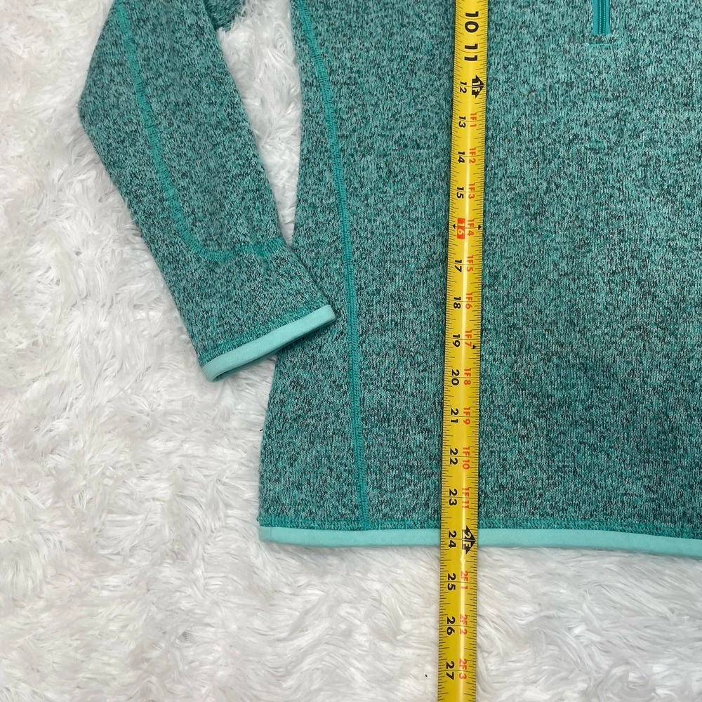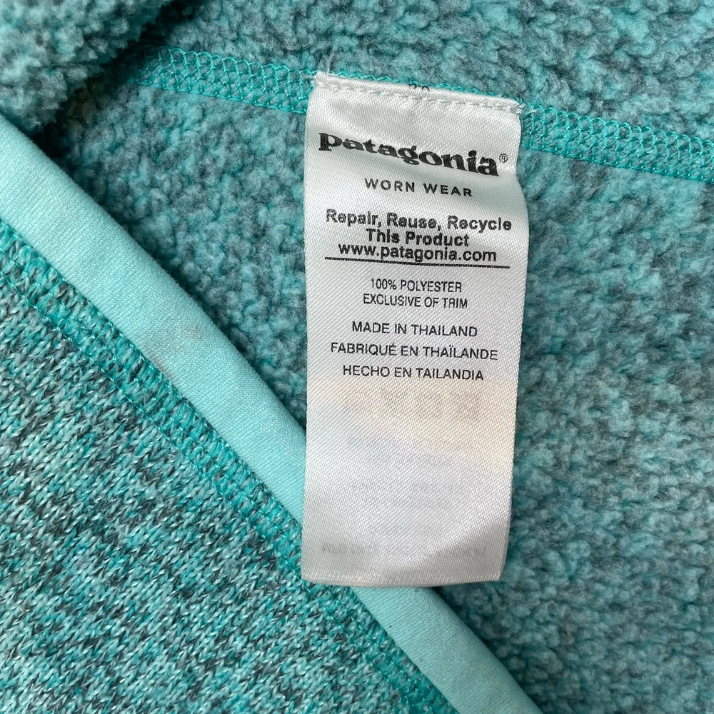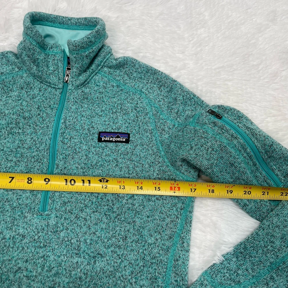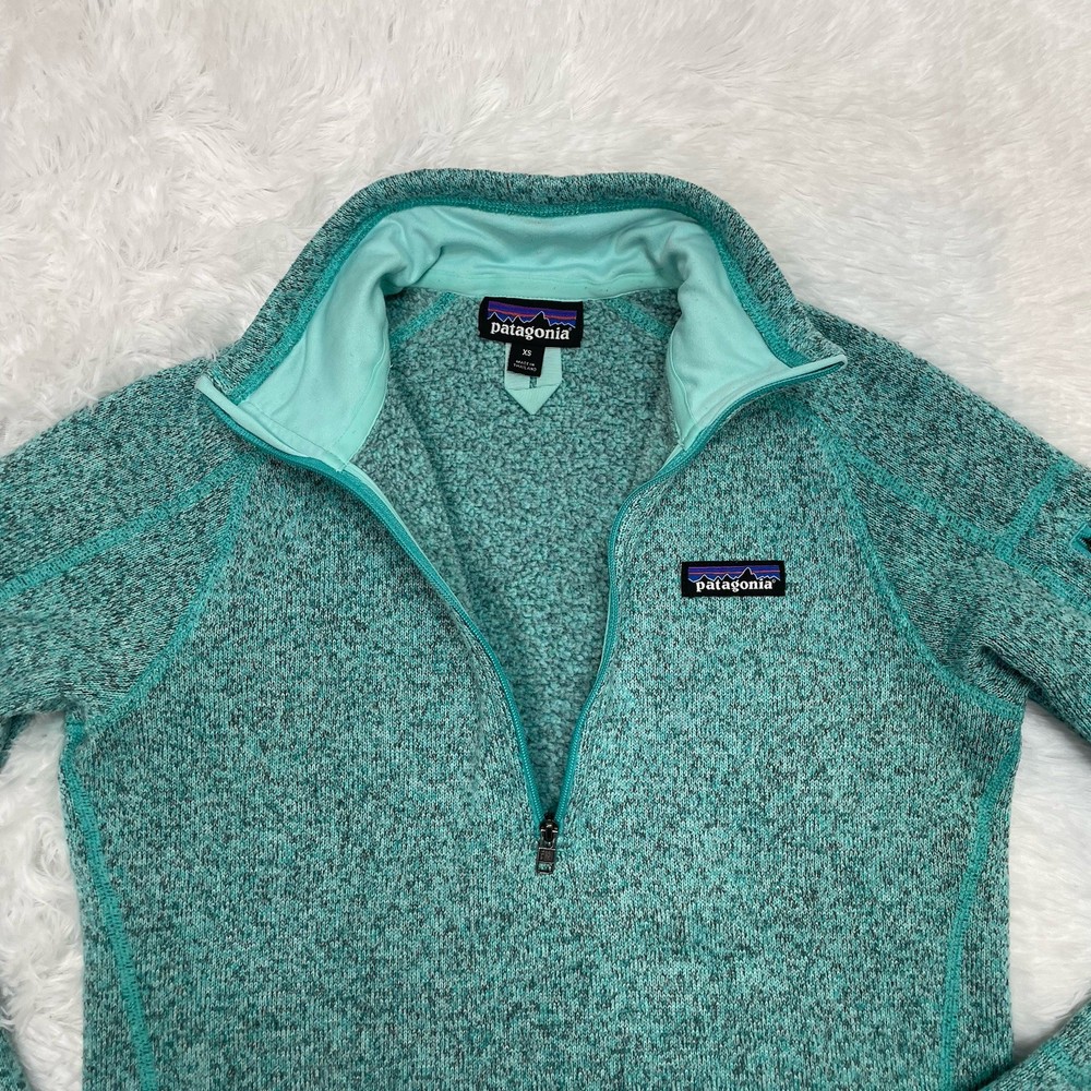 Patagonia Better Sweater Women’s Size XS Teal 1/4 Zip Fleece Hiking Outdoor Small paint mark at end of sleeve. See last photo No other stains or holes