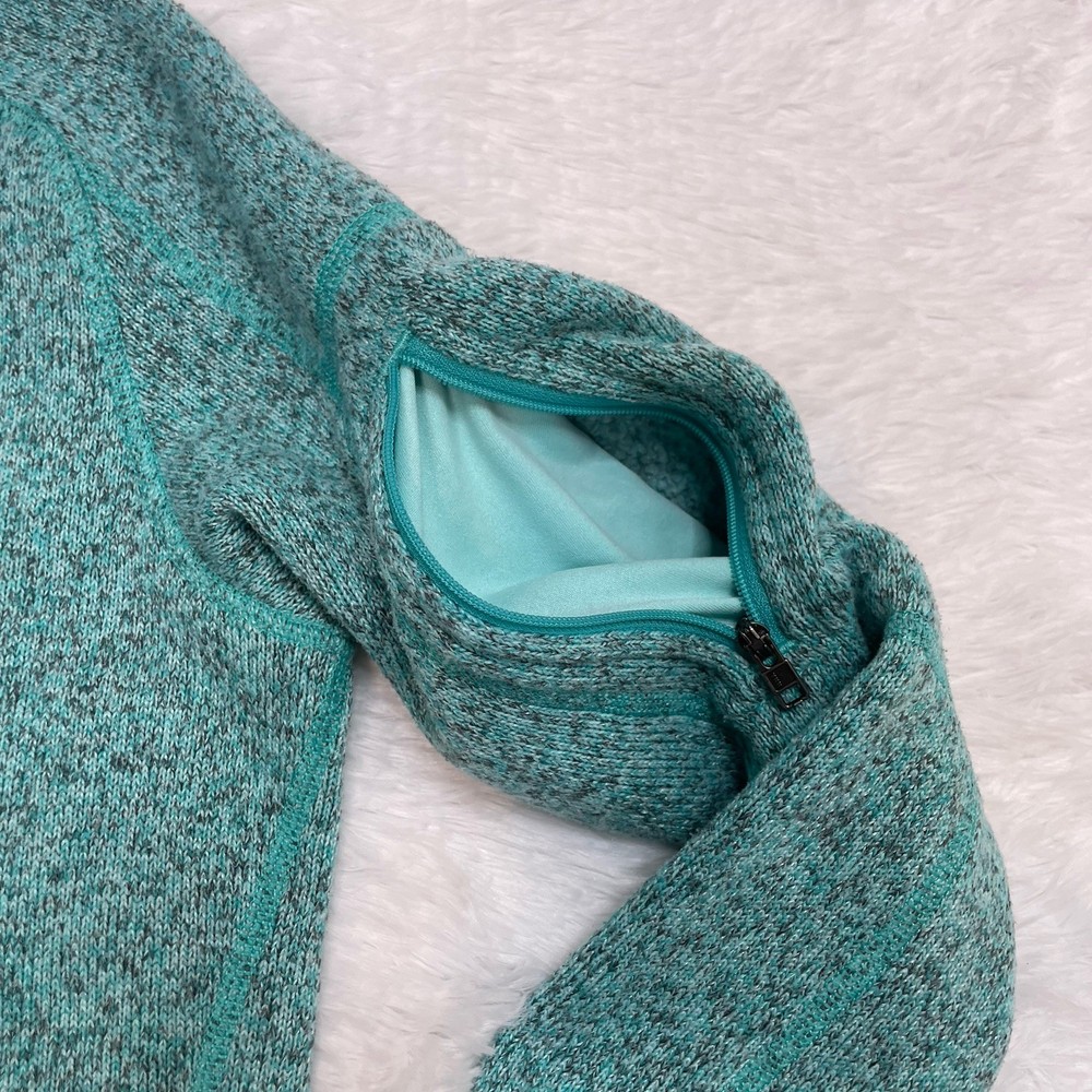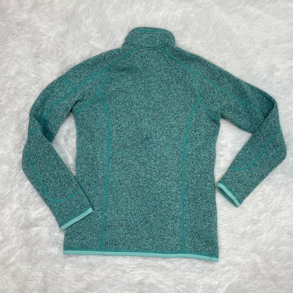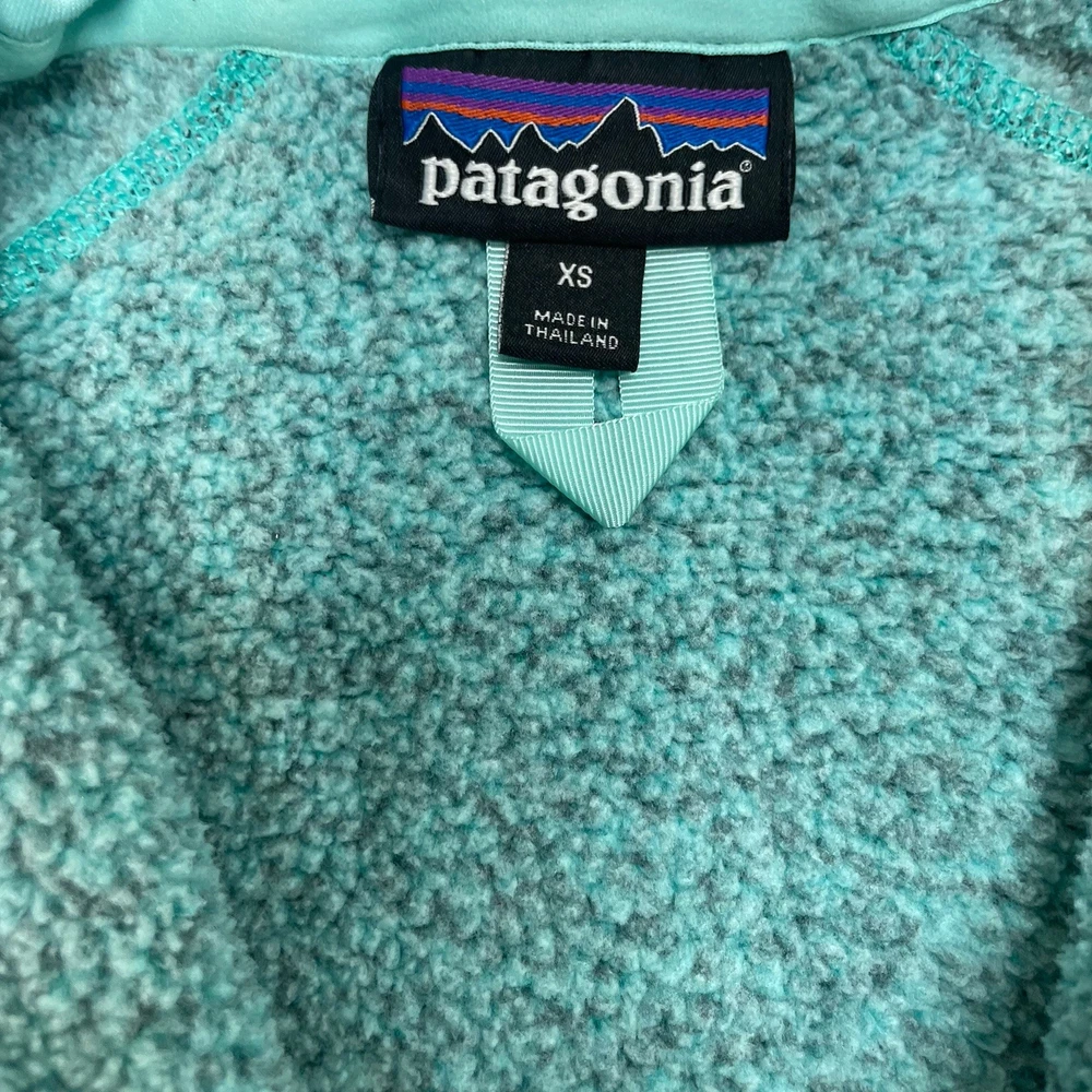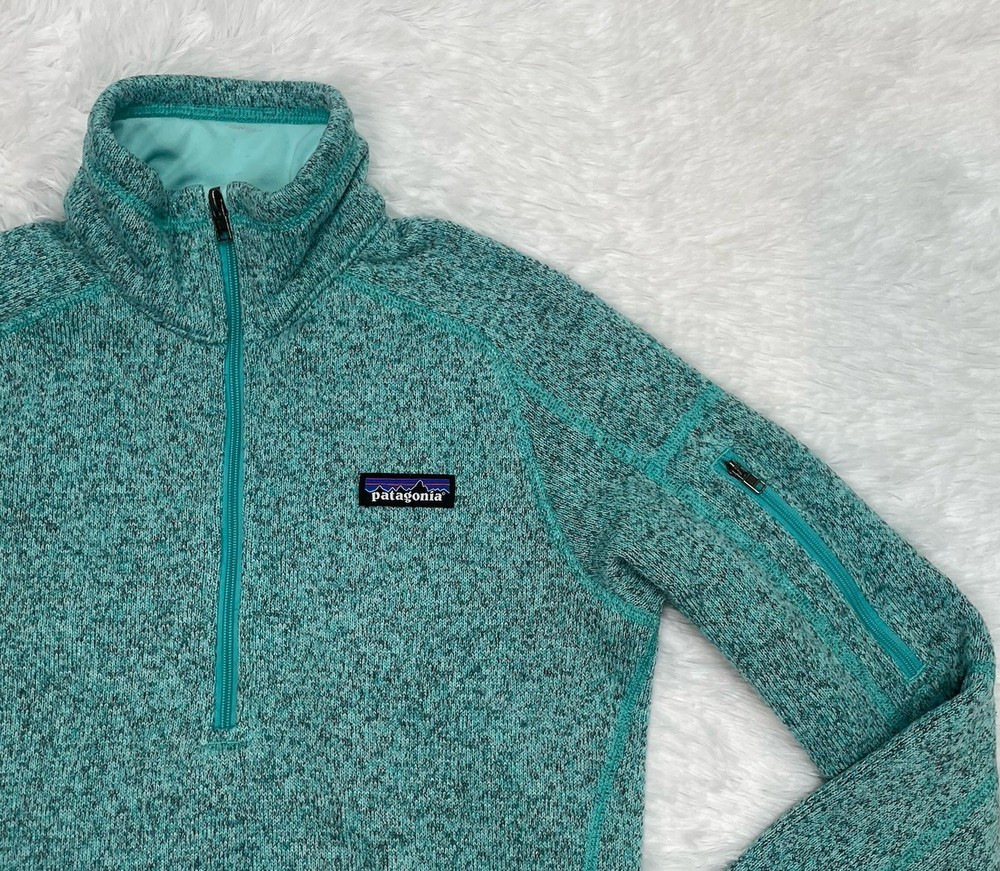 Patagonia Better Sweater Women’s Size XS Teal 1/4 Zip Fleece Hiking Outdoor Small paint mark at end of sleeve. See last photo No other stains or holes