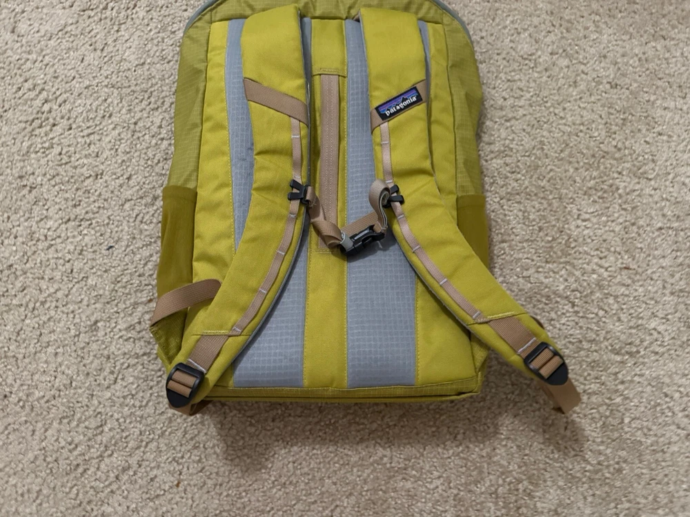 Patagonia Black Hole 25L Backpack Phosphorous Green There is an imprint on the back of the backpack (as pictured), but it is in otherwise good condition!