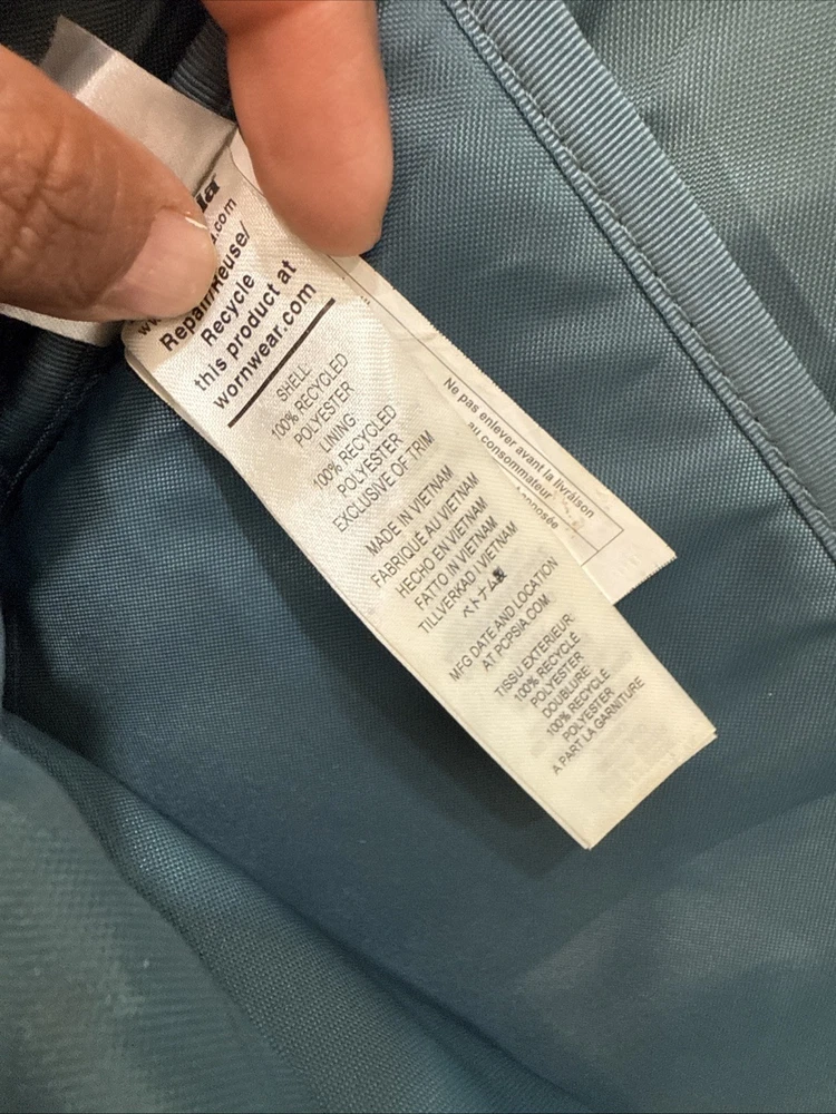 Brand:PatagoniaClosure:ZipSize:MediumSeller Notes:“Stain on the lower back shown in the photos.”Sport/Activity:BackpackingInsect Repellent Treated:NoColor:BlueType:Shoulder BagDepartment:Unisex AdultsCapacity:22L