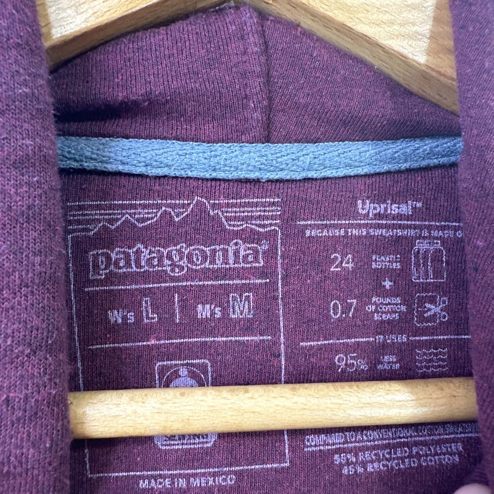 This Patagonia hoodie in burgundy is a must-have for any stylish man's wardrobe. The pullover style and regular size make it easy to wear, while the logo accents add a touch of sophistication. Made for activewear, this hoodie is perfect for any outdoor activity, from hiking to camping. The hoodie is available in size medium and is ideal for those who want to show off their love for Patagonia.