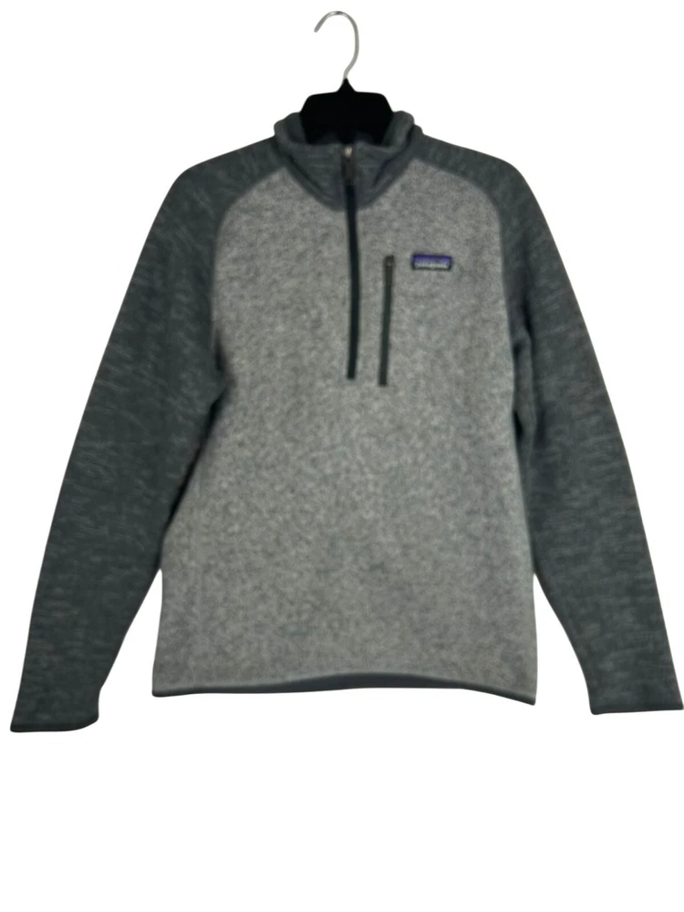 The Patagonia Men's Better Sweater 1/4 Zip Jacket in gray is a stylish and practical outerwear piece perfect for outdoor activities like walking and hiking in the winter, fall, and spring. Made from 100% polyester fleece, this mid-length jacket features a 1/4 zip closure and a band collar for a classic look. With its machine washable fabric and regular fit, this jacket offers both comfort and convenience for everyday wear or travel. Showcasing the iconic Patagonia logo, this jacket is a durable and versatile choice for any outdoor adventure.