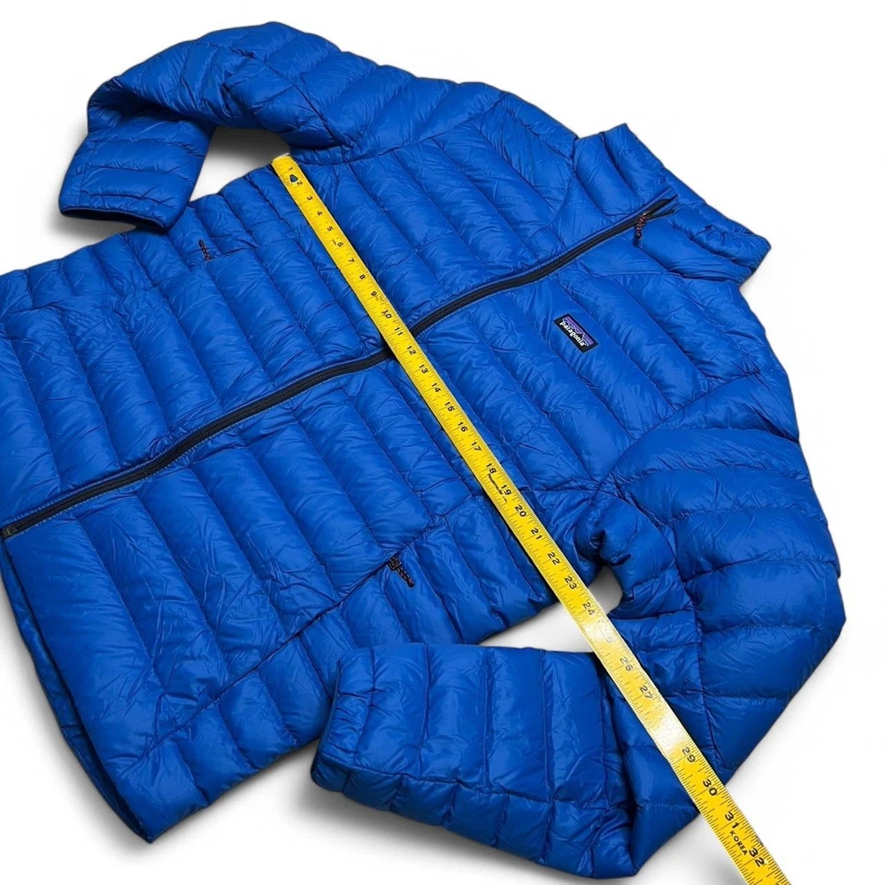 C06 / Patagonia Down Sweater Jacket - Men's / Blue Patagonia puffer jacket Large Ski - winter - hiking - outdoors - festival Events / party / boho / western - glam The perfect warmth for just about everything, our classic Down Sweater is lightweight and windproof with a shell built of NetPlus 100% postconsumer recycled nylon ripstop made from recycled fishing nets to help reduce ocean plastic pollution, and it's insulated with 800-fill-power 100% Responsible Down Standard down certified by Control Union (CU 880272). The purchase of Responsible Down Standard certified products demonstrates demand for better animal welfare practices in the down and feather supply chain
