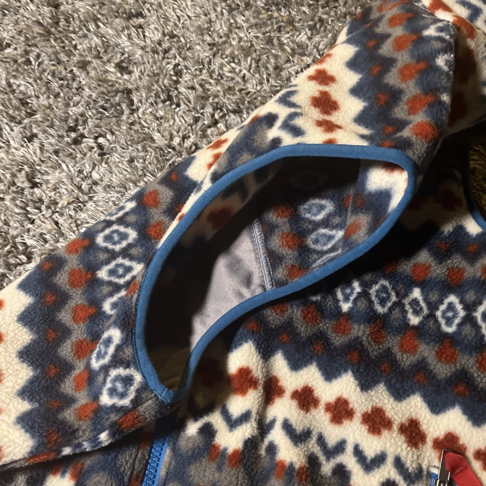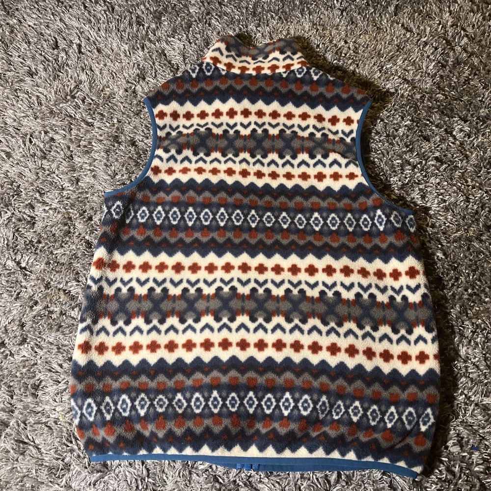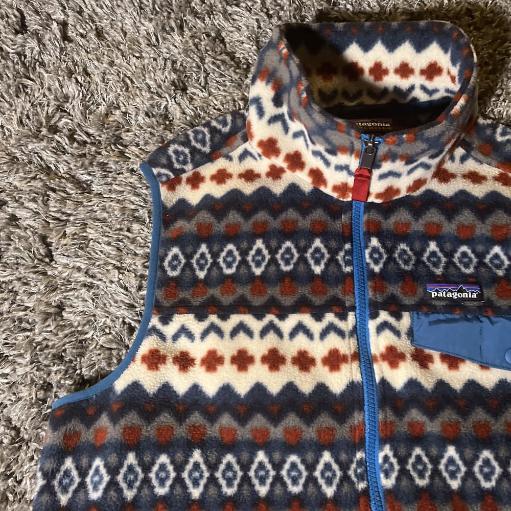 The Patagonia Lightweight Snap T Vest is a stylish and versatile outerwear piece for men. Made with polyester fleece fabric, this vest is perfect for travel, casual outings, or parties. The Aztec tribal geometric pattern adds a unique and stylish touch to the bomber jacket style. With a full zip closure and stand-up collar, this mid-length vest is both functional and fashionable. Machine washable and suitable for winter, fall, and spring seasons, this Patagonia vest is a must-have for outdoor enthusiasts and those who appreciate a southwestern flair in their wardrobe.