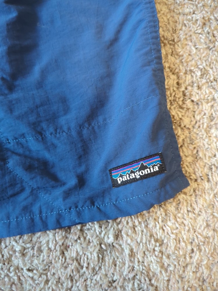 There are a few area of light discoloration on back of trunks as shown in photos. no rips or holes. drawstring works well.