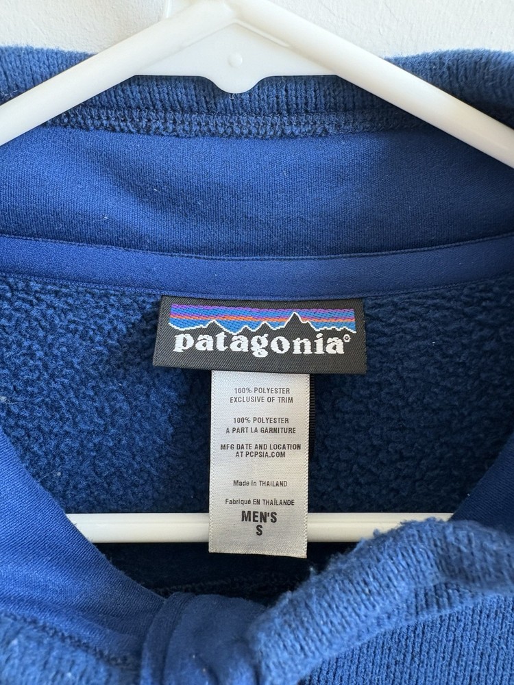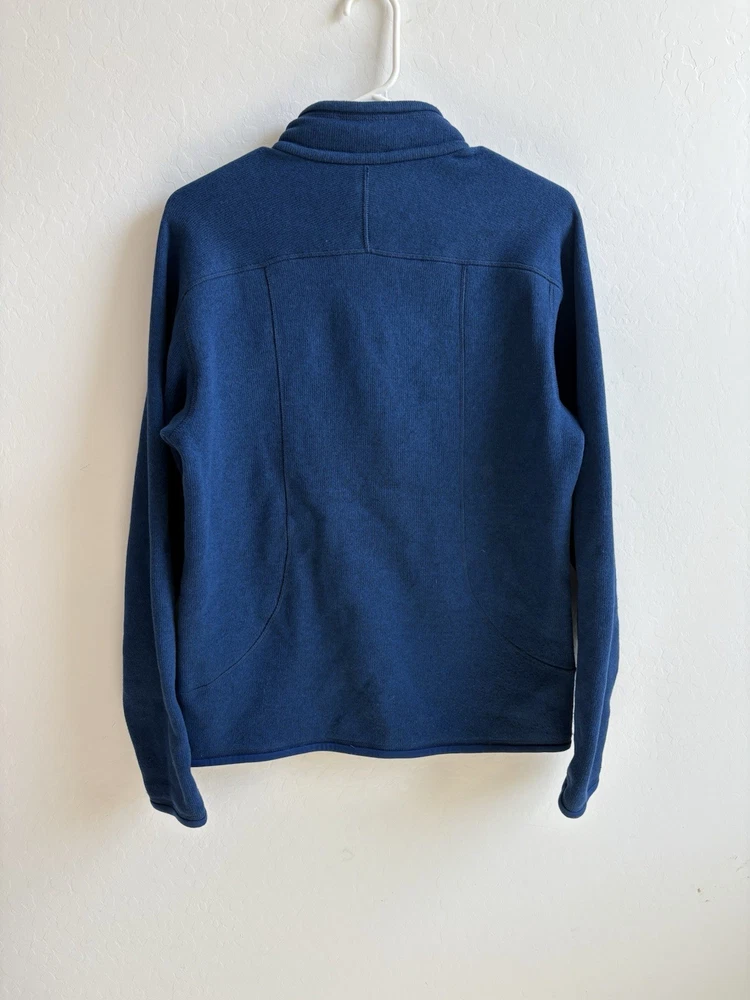 The Patagonia Men's Navy Blue Better Sweater Full Zip Fleece Jacket in size small is perfect for hiking and other outdoor activities. Made of polyester fleece, this mid-length jacket features a zip closure and a solid pattern. The regular fit and machine washable design make it convenient for everyday wear or travel. With the reputable brand of Patagonia and its focus on sustainable practices, this jacket is a stylish and functional choice for any adventure.
