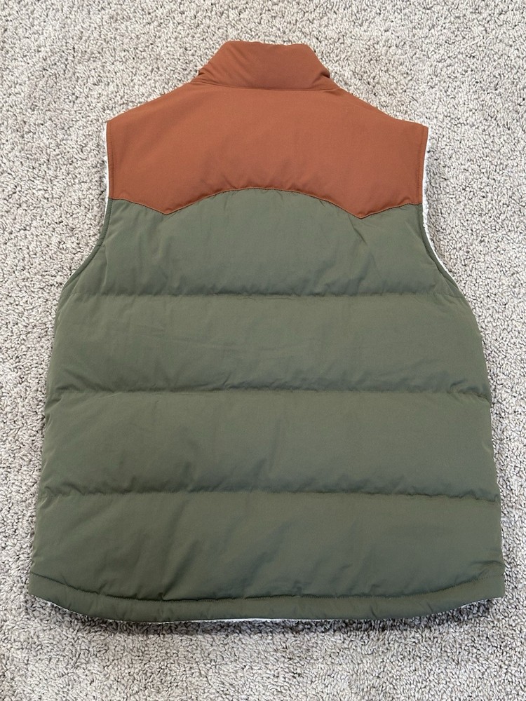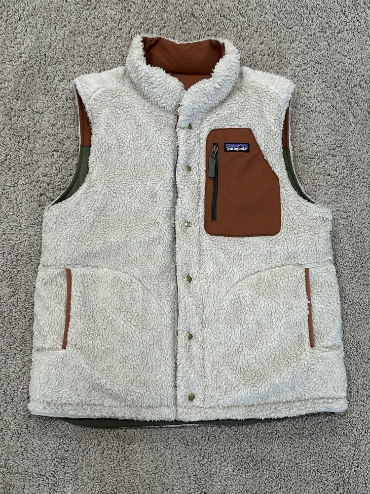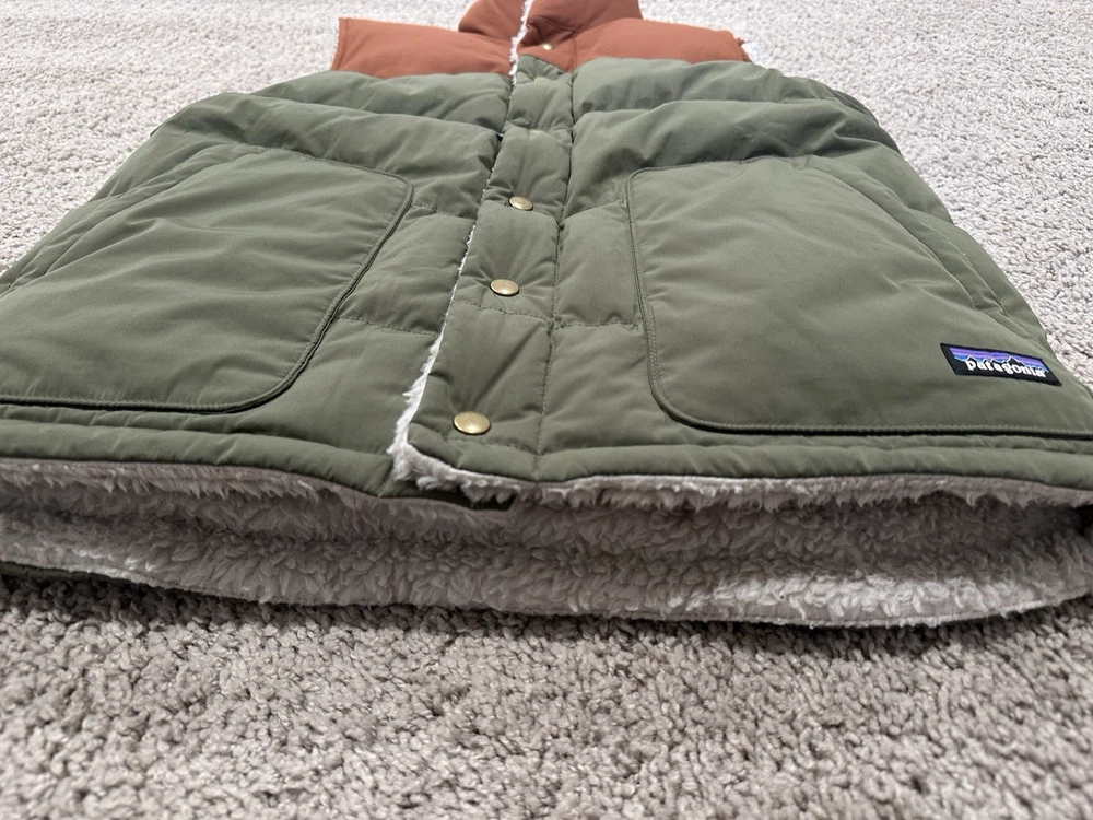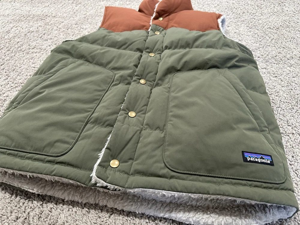 Up for bid is a Patagonia Men's Reversible Bivy Down Vest. It is a Men's Medium (M). Purchased in Fall 2025 Worn just one weekend. In excellent used condition (see pictures). This vest is the same style that Adam Brody's character Noah wore in Season 1 of the the Netflix TV show "Nobody Wants This" (not the original vest worn on-screen). NO international bidders, please. Shipping is $8.99 anywhere in the continental United States. I do not ship internationally. No returns, all sales are final. Size (approximate) Armpit to armpit: 21" Top Collar to bottom of shirt: 27" Item Description A water-resistant, reversible, insulated down vest with fleece lining that provides the perfect combination of warmth, functionality and durability. Made in a Fair Trade Certified™ factory. Shell: 100% recycled polyester with a DWR (durable water repellent) finish; yoke: recycled nylon; reverse side: 100% recycled polyester ¼"-pile fleece; insulation: 600-fill-power 100% Recycled Down (duck and goose down reclaimed from down products) Classic vest design features a front snap-placket and a warm, comfortable down-filled collar to protect your neck Face side has patch-on, side-entry handwarmer pockets lined with soft microfleece Reverse side has a patch-on, left-chest zippered pocket made with recycled nylon and side-entry handwarmer pockets with elastic binding Designed with a drop-tail hem for additional coverage on your backside Hip length provides additional coverage and pairs nicely with a hip belt or a harness Made in a Fair Trade Certified™ factory, which means the people who made this product earned a premium for their labor