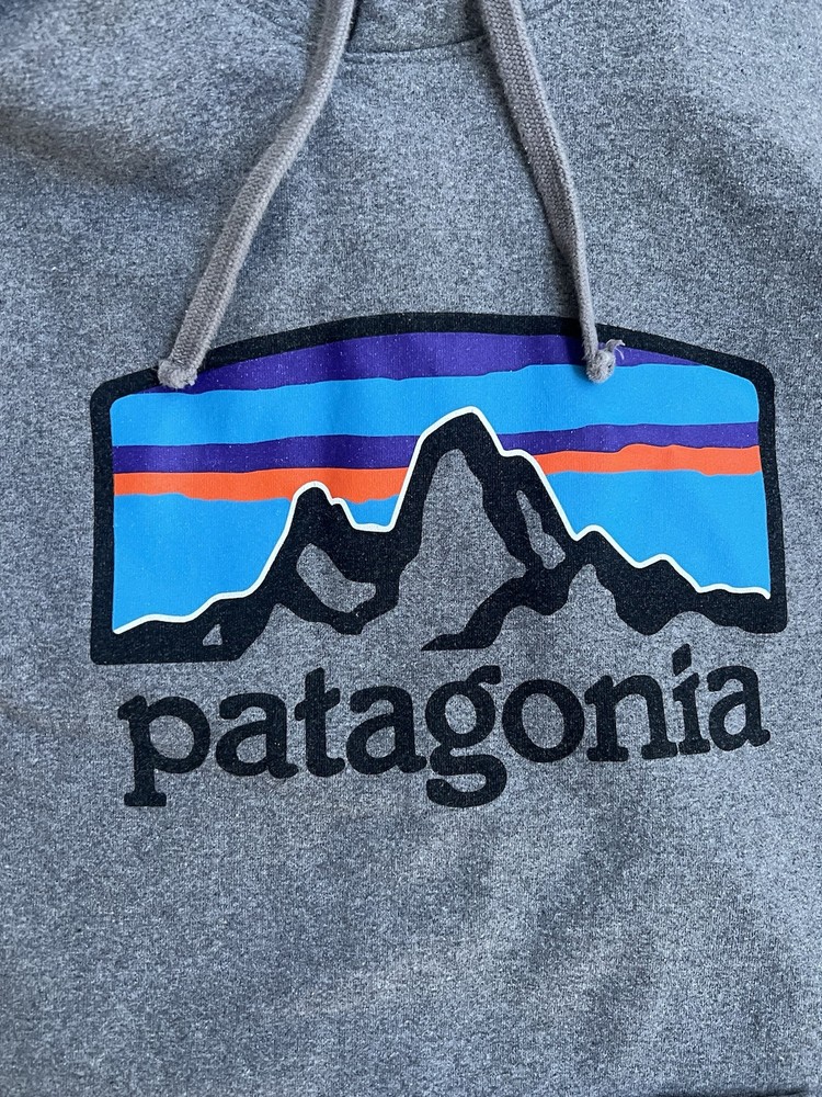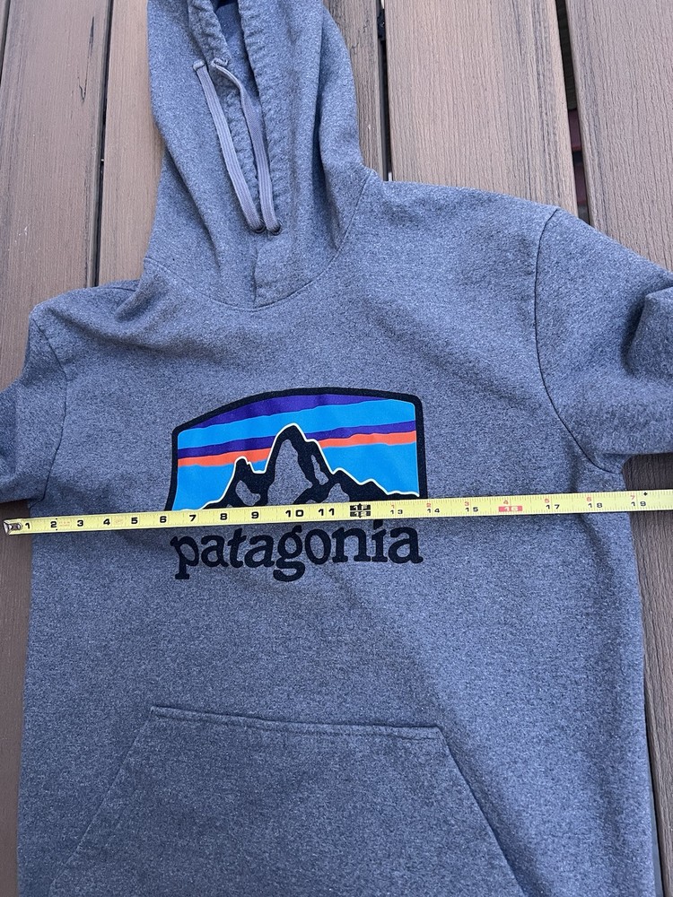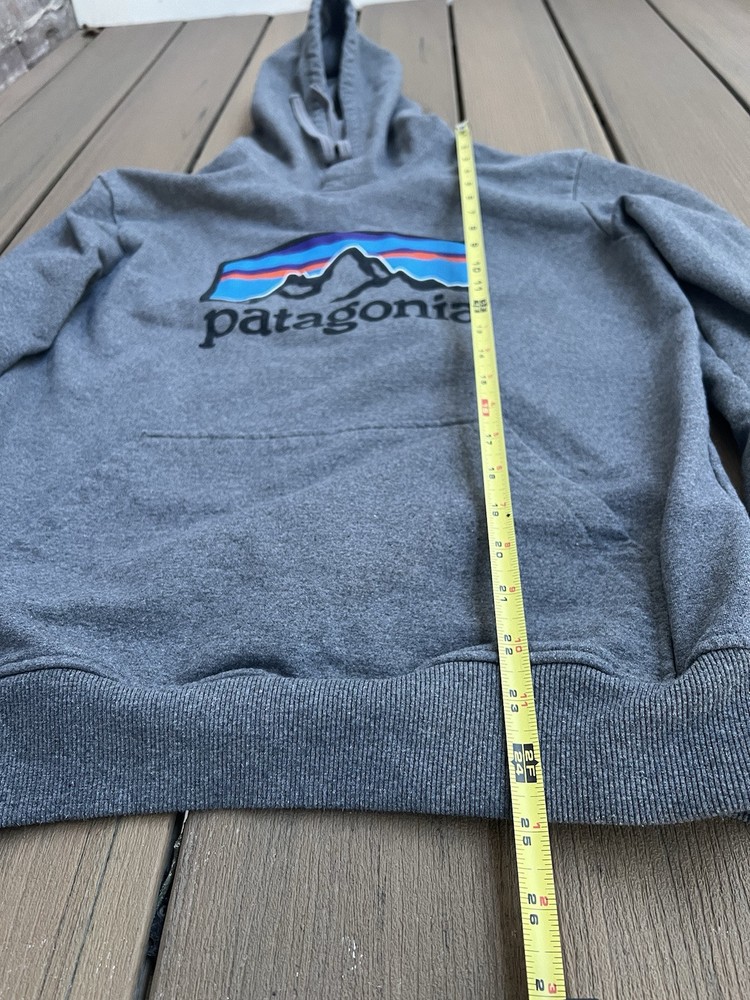 Elevate your casual wardrobe with this stylish Patagonia Hoodie for men. The grey pullover features a small logo accent, adding a touch of brand identity to your look. Perfect for any outdoor activity or casual wear, this regular size hoodie is made for comfort and durability. The pullover style and hooded design make it easy to wear and versatile for any occasion. Add this must-have hoodie to your collection today. Great shape.