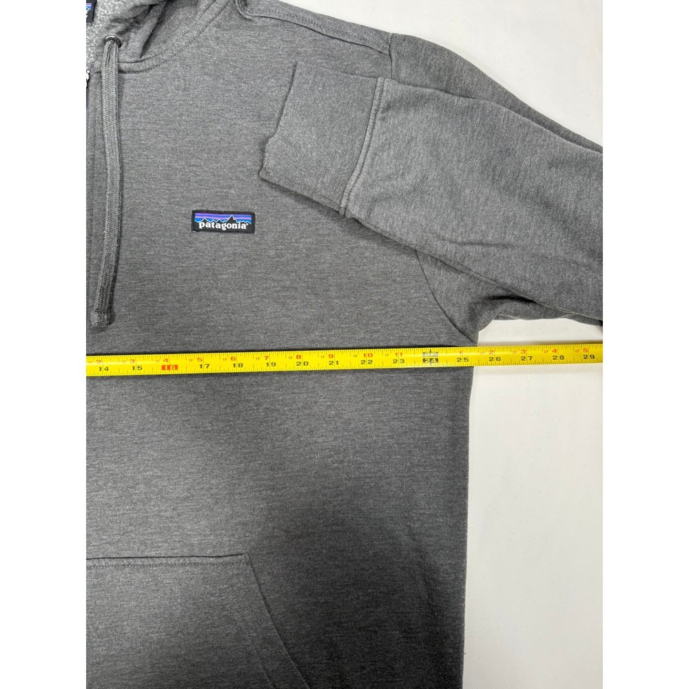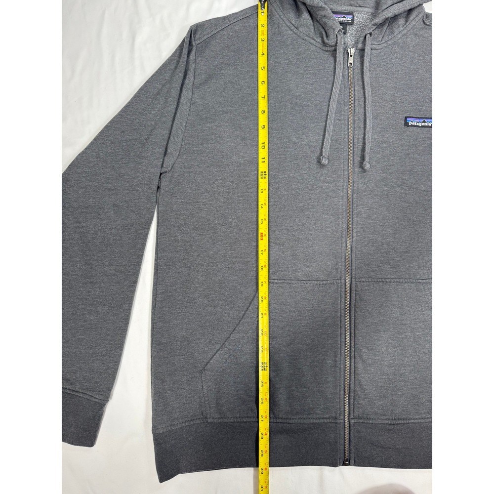 Elevate your comfort with this Patagonia full-zip hoodie, a versatile layer designed for everyday adventures. This jacket features a classic silhouette with a cozy hood and front pockets, perfect for keeping your essentials close at hand. The minimalist design is accented by the iconic Patagonia logo, adding a touch of outdoor heritage to your casual wardrobe. Whether you're heading out for a weekend hike, running errands around town, or relaxing at home, this hoodie offers the perfect blend of style and functionality. Measurements: • Sleeve Length: 25 inches • Length: 30.5 inches Type: Hoodie Color: Gray Department: Men Style: Full Zip Features: Hooded, Full Zip, Pockets, Lightweight, Breathable Closure: Zip Fabric Type: Knit Character: Outdoor Enthusiast, Hiker, Casual, Urban, Eco-Conscious Performance/Activity: Hiking, Walking, Running & Jogging, Cross Training, Everyday Use Keywords: Patagonia, Hoodie, Full Zip, Jacket, Mens, XL, Extra Large, Gray, Organic Cotton, Outdoor, Comfortable, Casual, Activewear, Layering Piece