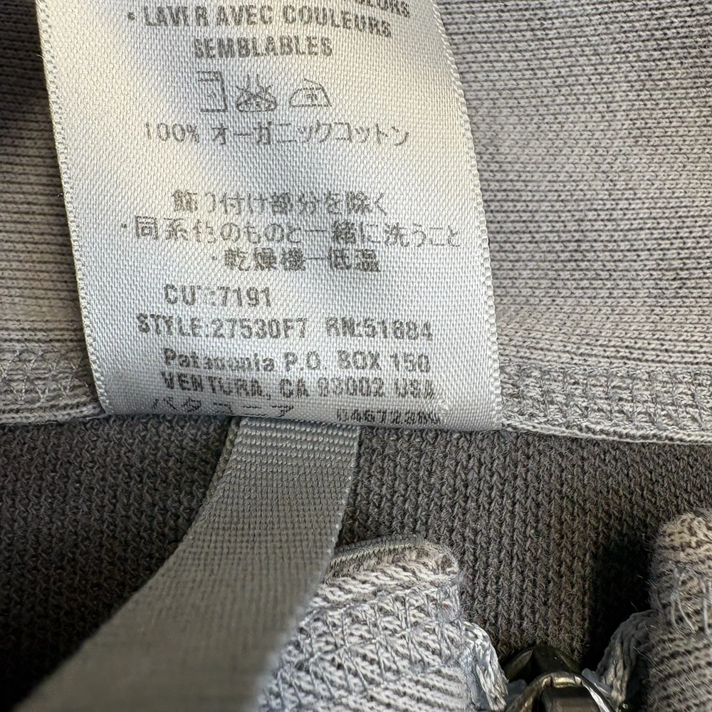 MPN: 27530 Warmth Weight: 300 Accents: Logo, Zipper Fit: Slim Collar Style: Stand-Up Handmade: No Fabric Type: Knit Outer Shell Material: Cotton Department: Men Theme: Outdoor Performance/Activity: Hiking Vintage: Yes Insulation Material: N/A Personalize: No Features: Full Zip Color: Gray Brand: Patagonia Size: L Product Line: N/A Model: 27530 Style: Casual Type: Jacket Country of Origin: Thailand Garment Care: Machine Washable Occasion: Casual Size Type: Regular Closure: Zip Pattern: Solid Season: Fall, Spring, Winter Jacket/Coat Length: Mid-Length Lining Material: Cotton