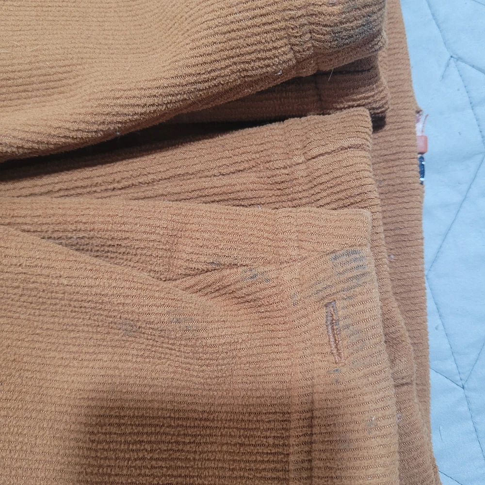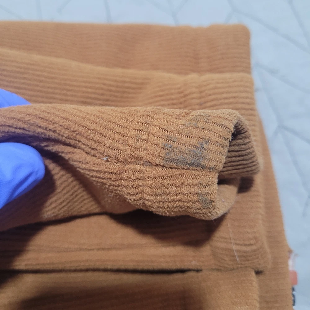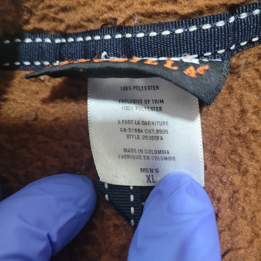 Jacket or sweater is in good condition overall, might have some loose threads, it also shows some black stains by the zipper area and the hand wrists, please review every picture for condition before you buy. Measurements Neck to Bottom 29" Armpit to Armpit 23 Sleeves 23"