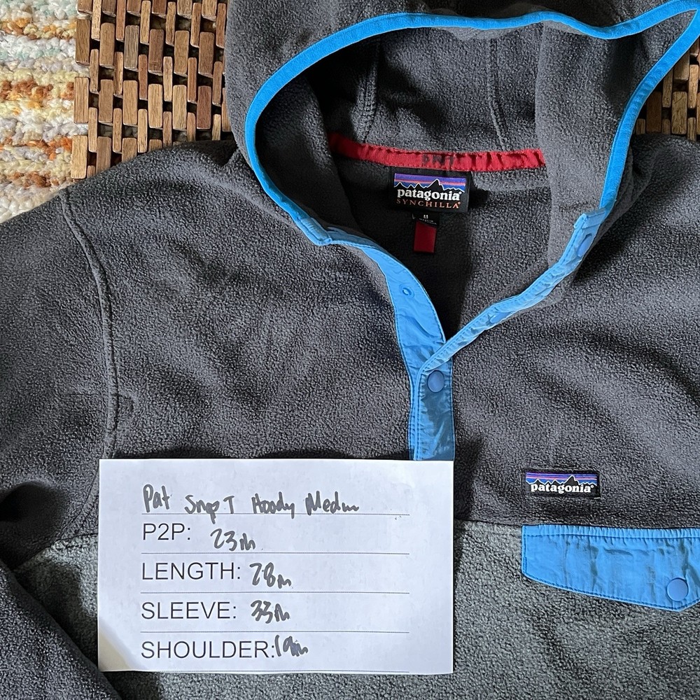 The Patagonia Shelled Synchilla Snap T Hoodie in Blue Grey is a versatile fleece jacket perfect for outdoor activities like skiing and hiking. Made with high-quality polyester material, this jacket features a solid color pattern with a full zip closure for easy layering. The logo accents add a stylish touch, making it a functional and fashionable choice for men looking for a comfortable and durable outerwear option.