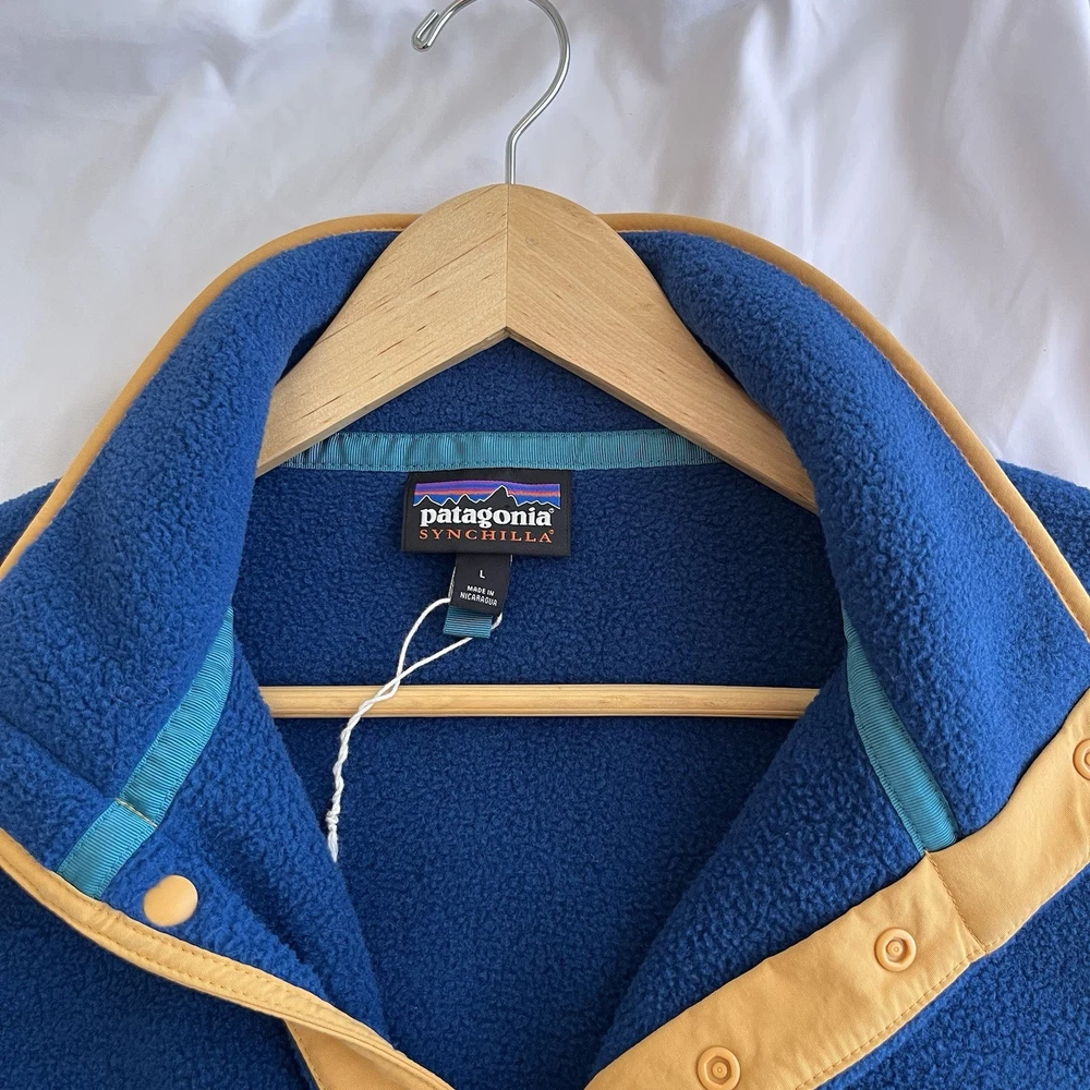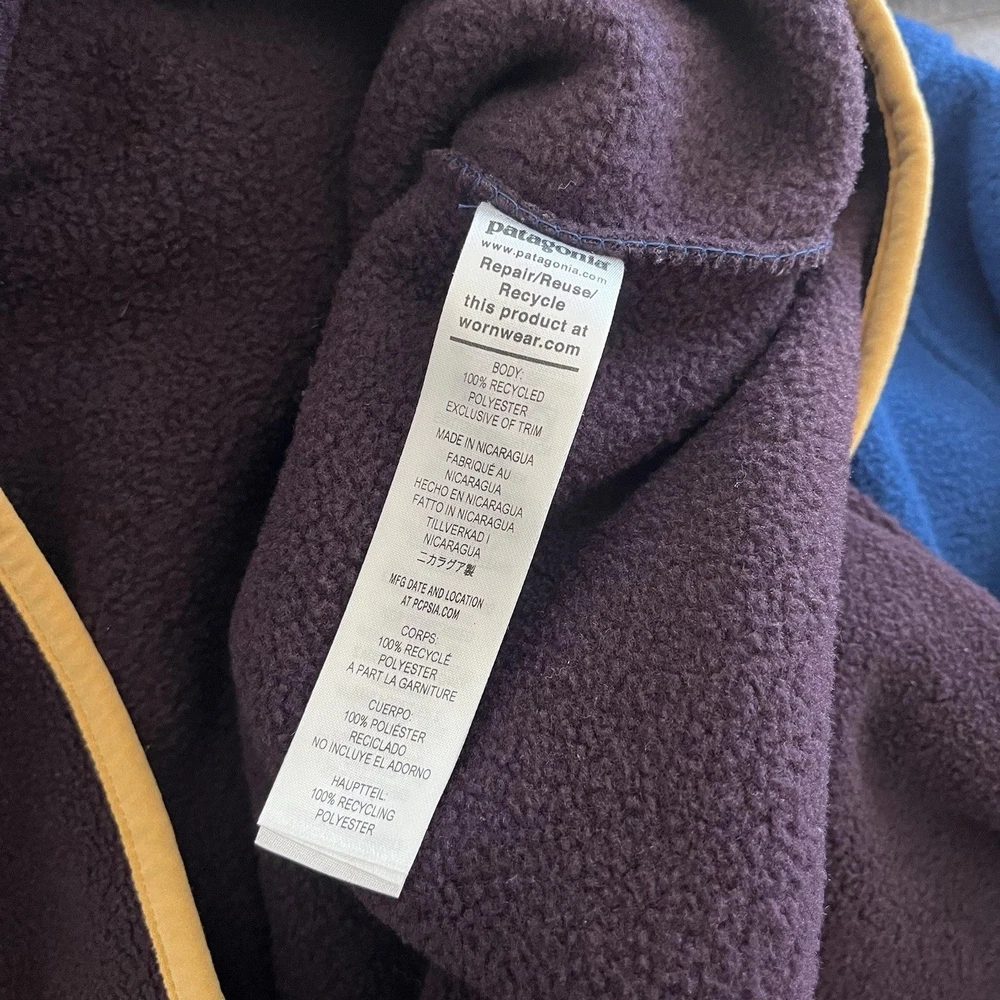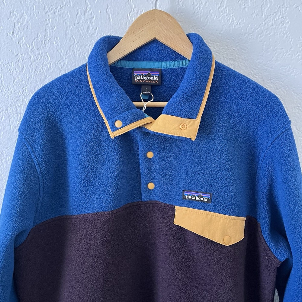 Brand: Patagonia Style: Pull Over Lining Material: Polyester Size Type: Regular Character: Blue Fit: Regular Accents: Logo Insulation Material: Polyester Model: Patagonia Synchilla Occasion: Casual, Travel Color: Obsidian Plum Theme: Outdoor Size: L Fabric Type: Fleece Outer Shell Material: Fleece Country/Region of Manufacture: Nicaragua Vintage: No Jacket/Coat Length: Mid-Length Closure: Snap Handmade: No Features: Lightweight Personalize: No Product Line: Patagonia Synchilla Season: Fall, Spring, Winter Performance/Activity: Hiking, Walking Pattern: Solid Collar Style: Stand-Up Department: Men Type: Jacket Garment Care: Machine Washable