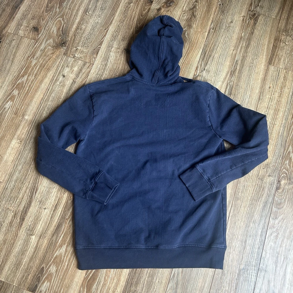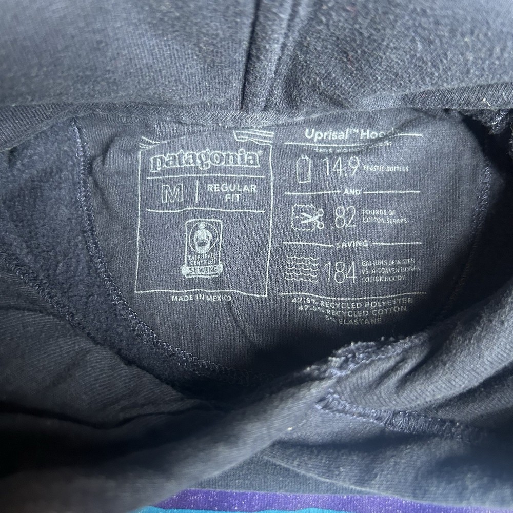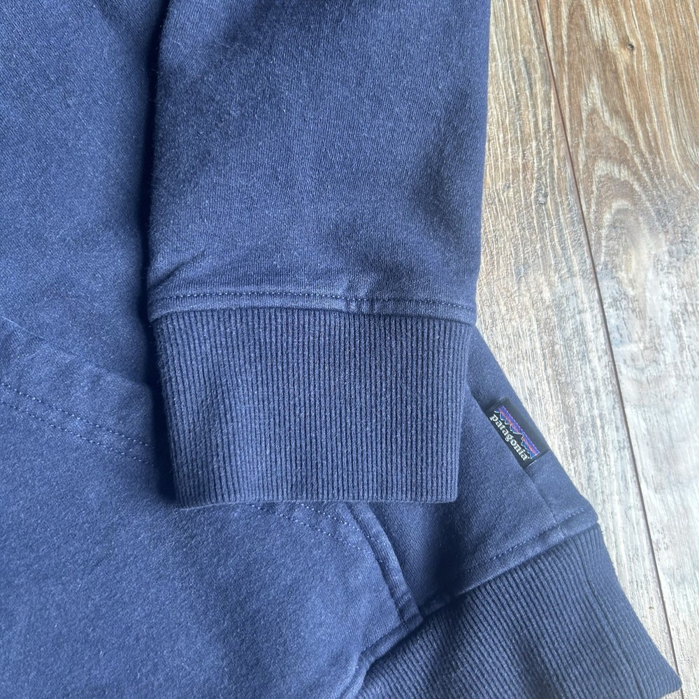 The Patagonia Uprisal Hoodie in Men's Medium Blue is a stylish and comfortable activewear piece perfect for casual wear or outdoor activities like hiking. Made from a cozy cotton blend material, this hoodie features a drawstring closure and a hood for added warmth and style. The solid blue color and regular fit make it a versatile addition to any man's wardrobe, offering a pullover design and long sleeves for convenience and comfort. With the reputable brand of Patagonia, this hoodie combines quality craftsmanship with a classic outdoor theme, making it a must-have for any man looking for a reliable and fashionable sweatshirt. There is regular use fading on the front/back other wise excellent used condition Tags: hiking, outdoor, fall, winter, spring, Patagonia, mountains, navy, hoodie