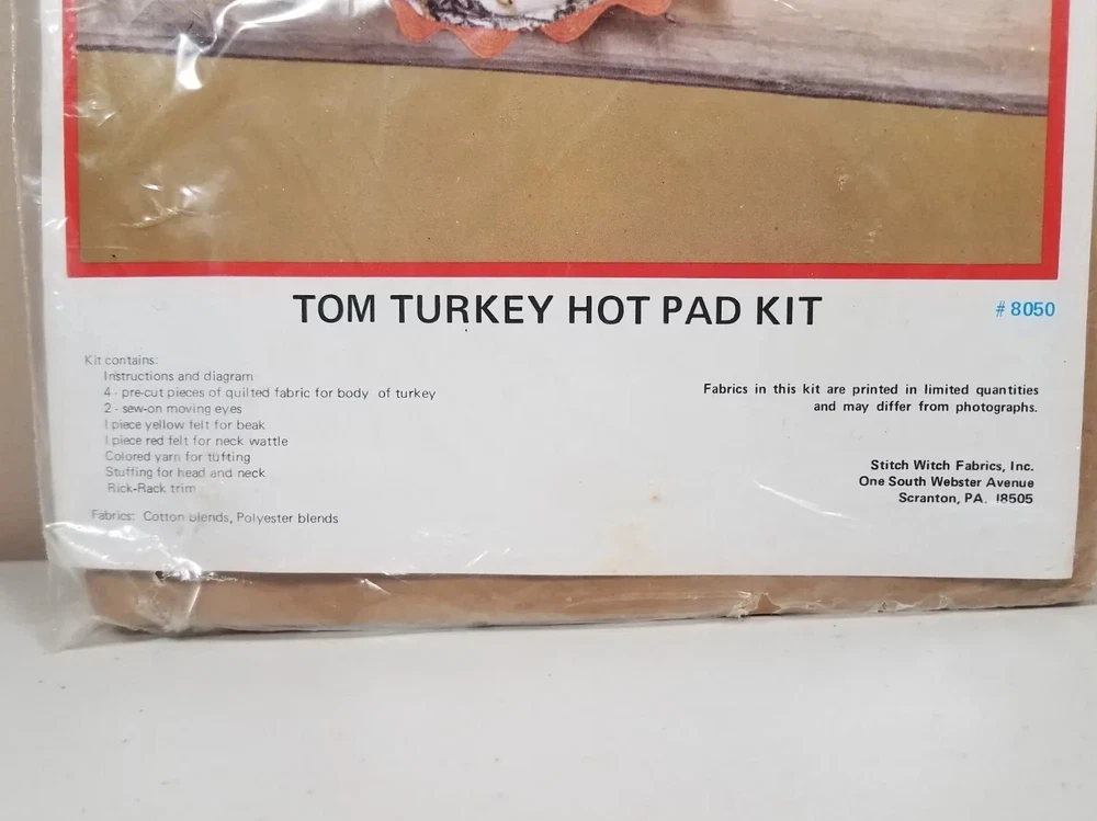 Patches Do it Yourself Kit Stitch Witch Fabrics Tom Turkey Hot Pad Kit #8050