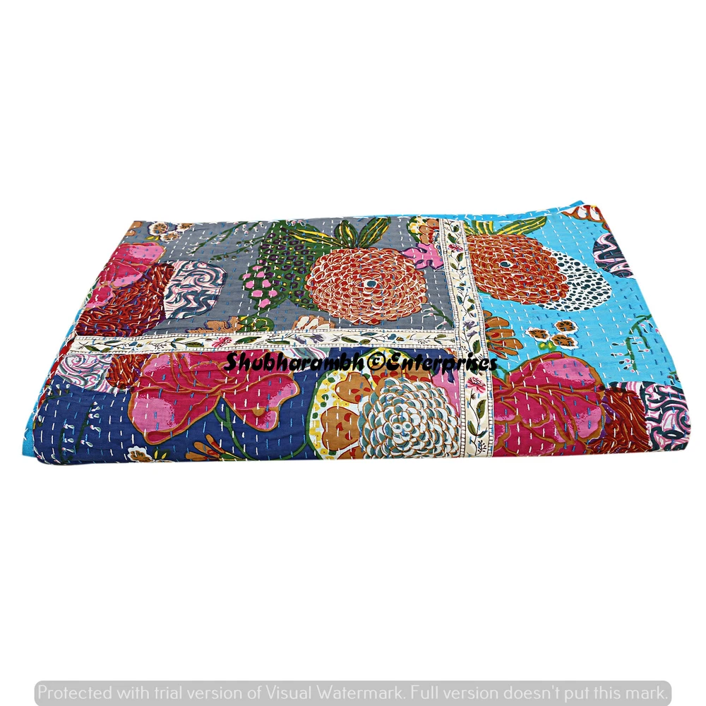 Product Details : Item - 1 PC Indian Cotton Kantha Quilt Fabric - 100% Cotton Fabric. Dimension - 90'' x 108" Inch (228 x 274 Cm) Colour - As Show in image Wash Care - Machine Washable . Product Description: Indian Cotton fabric Hand Kantha Quilted Queen Size Quilt, Blanket / Bedspread These Hippie Kantha quilt is made by two layer cotton fabric. These Kantha quilt is made by most of valuable hand art to give a unique Kantha pattern. Front side always Screen printed with kantha Work and back side always solid pattern. Payment policy: We accept the payment by pay pal. International buyers are responsible for their countries duties and taxes. Shipping Policy: We ship The Item Worldwide By FEDEX , UPS and by BOMBINO services. Feedback: Our aim is 100% buyer satisfaction. If you are pleased to our service so give a positive feedback.