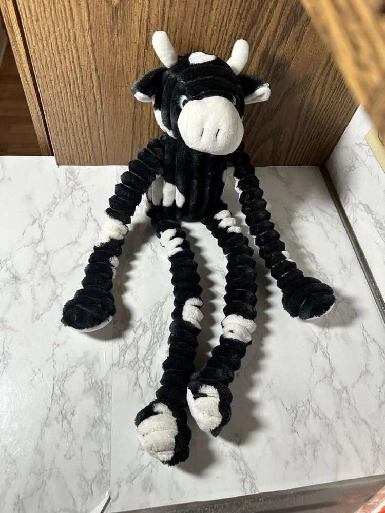 Patchwork Long Leg Cow Dog Squeaky Dog Toy 24”. Condition is Used. Shipped with USPS Ground Advantage.