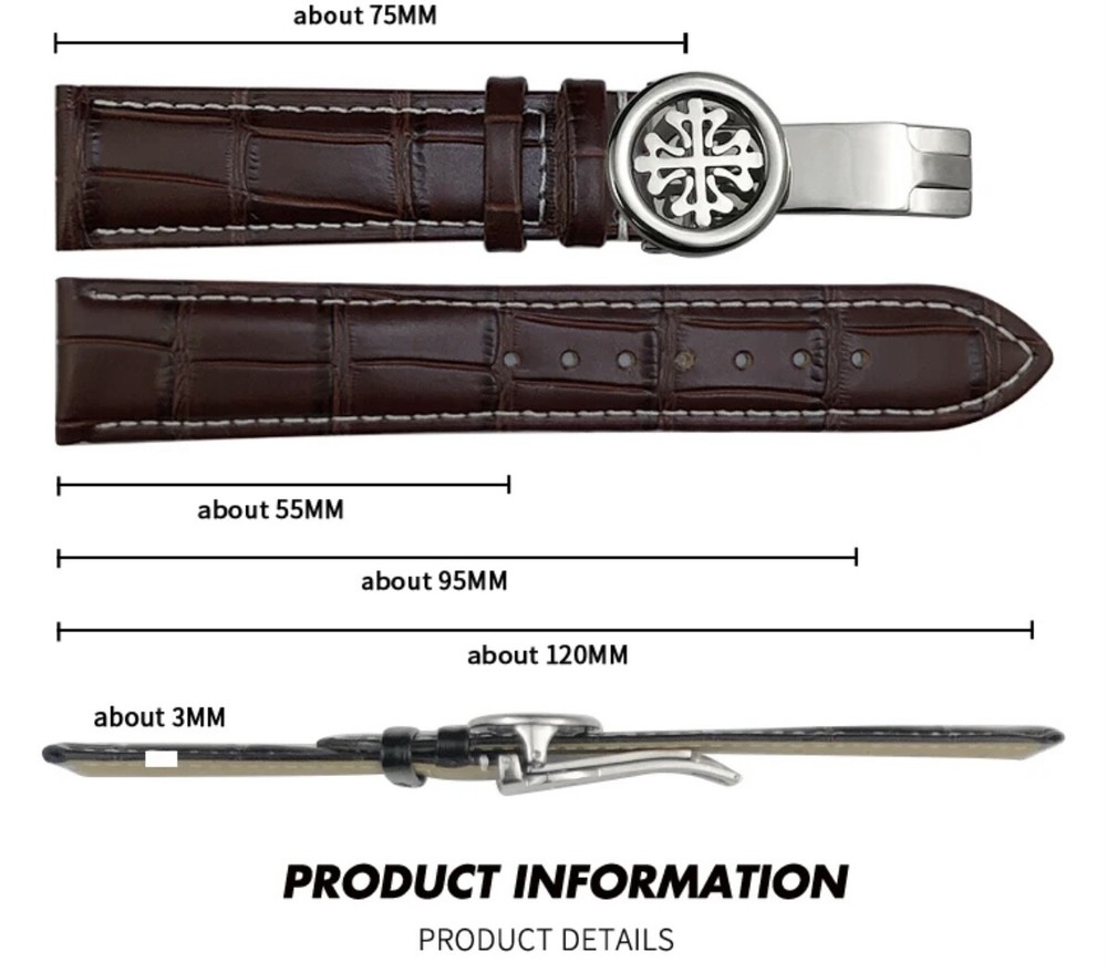 This leather watch strap is a fantastic upgrade for any Patek Philippe watch! The high-quality leather feels luxurious and comfortable, while the deployant buckle ensures a secure fit. It looks elegant and timeless, matching both casual and formal outfits perfectly. The craftsmanship is impressive, making it a great choice for watch lovers who want to refresh their timepiece. Highly recommended!