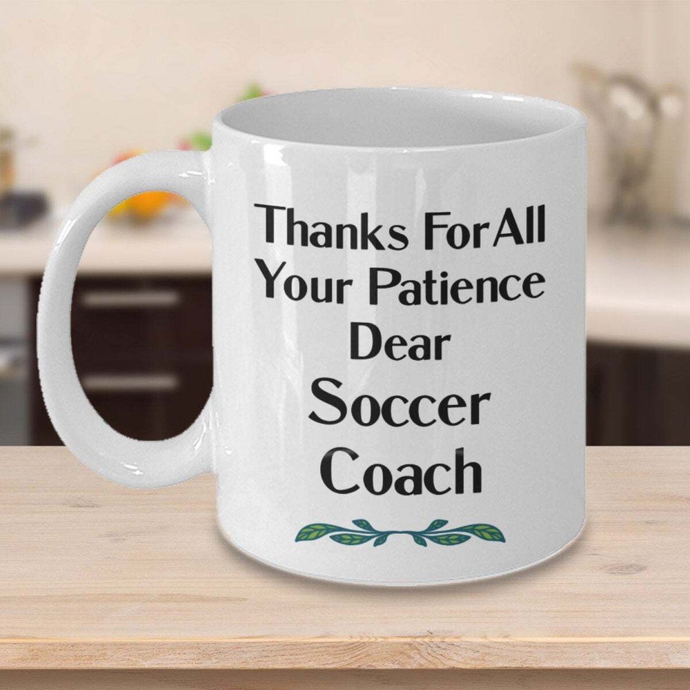 Soccer Coach Mug Thanks For All Your Patience Soccer Coach Gift Ceramic Mug Product Details.. This high quality 11oz. ceramic white mug has a premium hard coat that provides crisp and vibrant color reproduction sure to last for years. Perfect for all hot & cold beverages. The highest quality printing possible is used. It will never fade no matter how many times you wash it. Material: 100% Ceramic. Print both sides. Dishwasher and Microwave Safe. High Gloss + Premium White Finish. Printed in the U.S.A. Personalized & Custom. We support personalized and custom mug to add custom, when placing an order, you can add notes to the "order note" in shipping address section. Also you can contact us directly via message. Shipping Info. Ready to ship in 1 to 2 business days, All products are made-to-order and proudly printed in the United States. Shipped by USPS and DHL, You will receive your order in 5-7 days. Replace & Refund. All products are defective during shipping broken, chipped will be replaced free of charge. You are not satisfied with the product, we will refund 100% money to you. If any other issues arise, please do not hesitate to message, we would be more than happy to assist you.