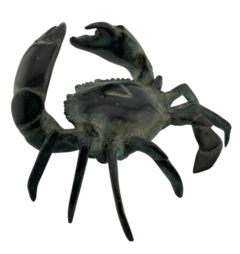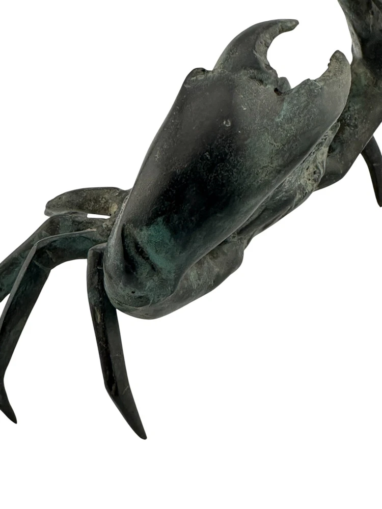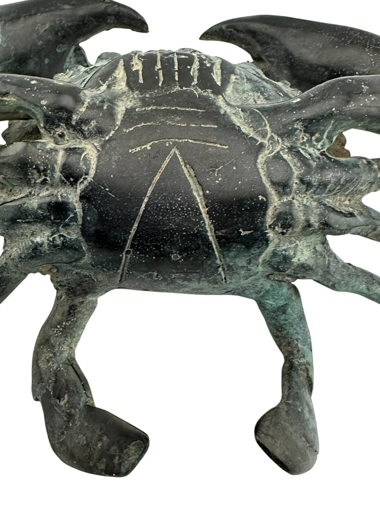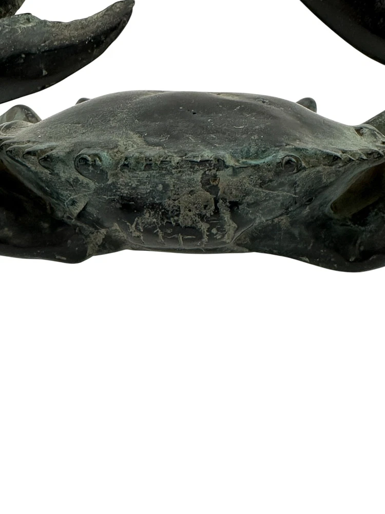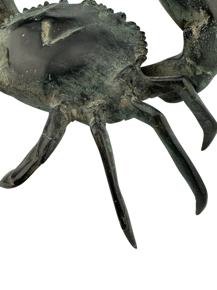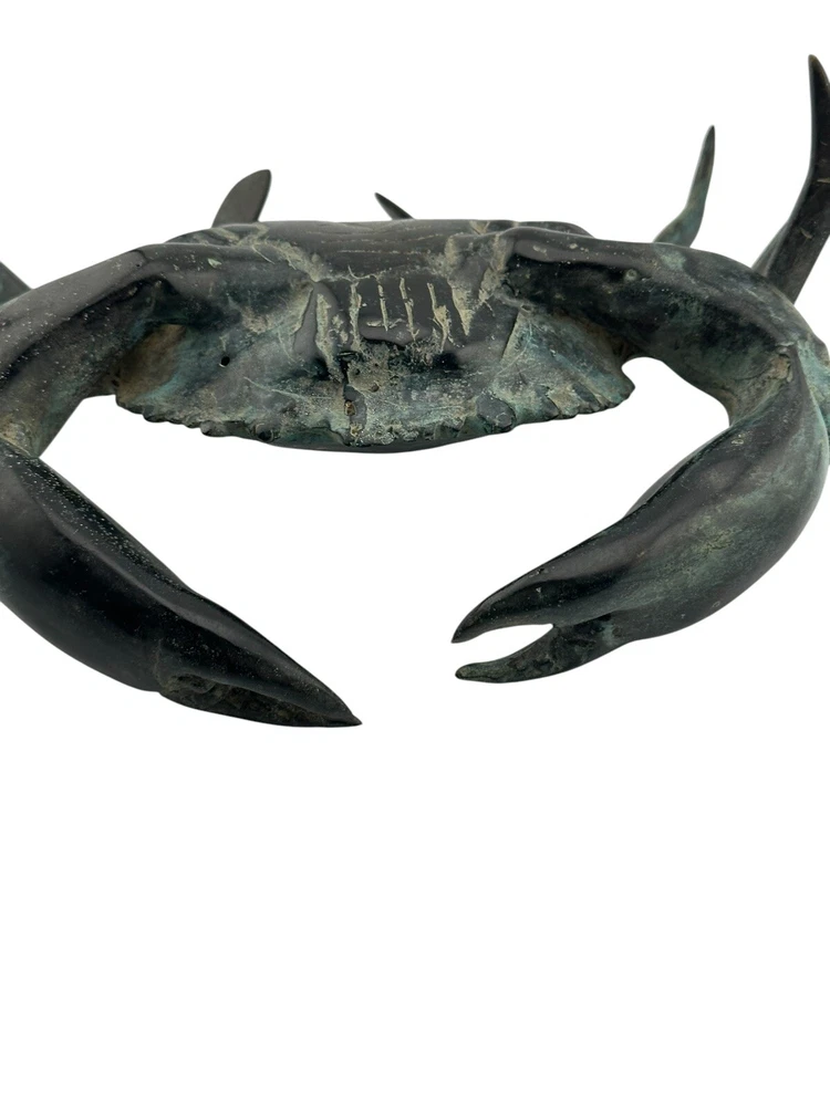 Patina Metal Crab Sculpture Figurine Sea Life Animal Creature Ocean Beach Water Approximate Dimensions: 5” tall 8” wide 5 3/4” deep