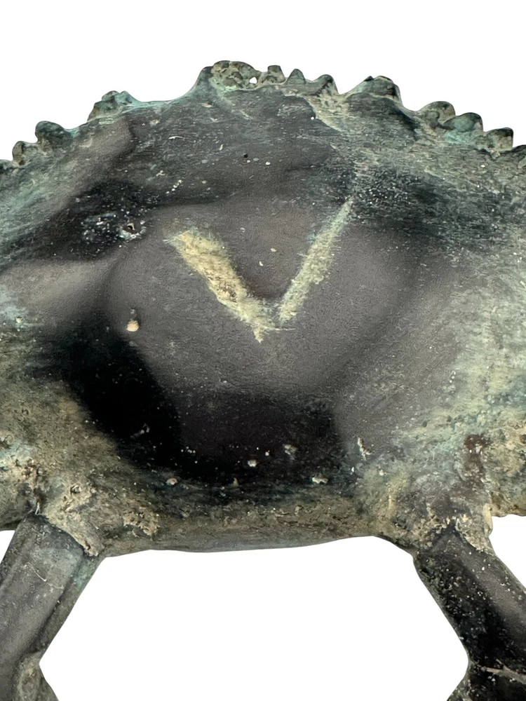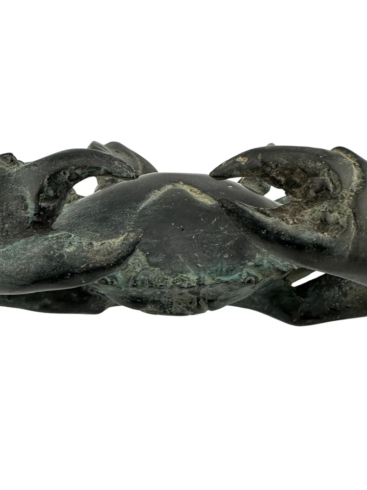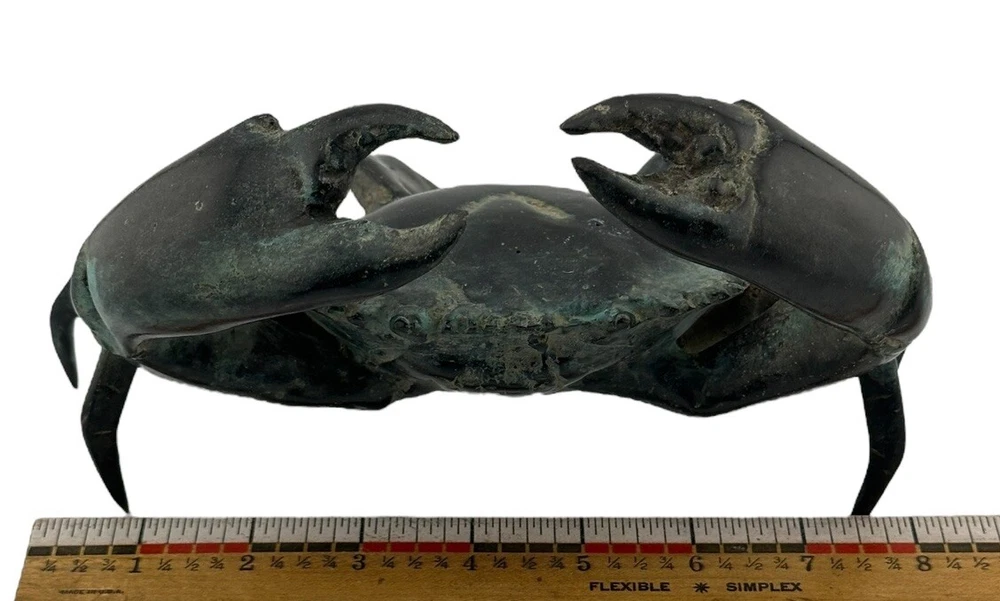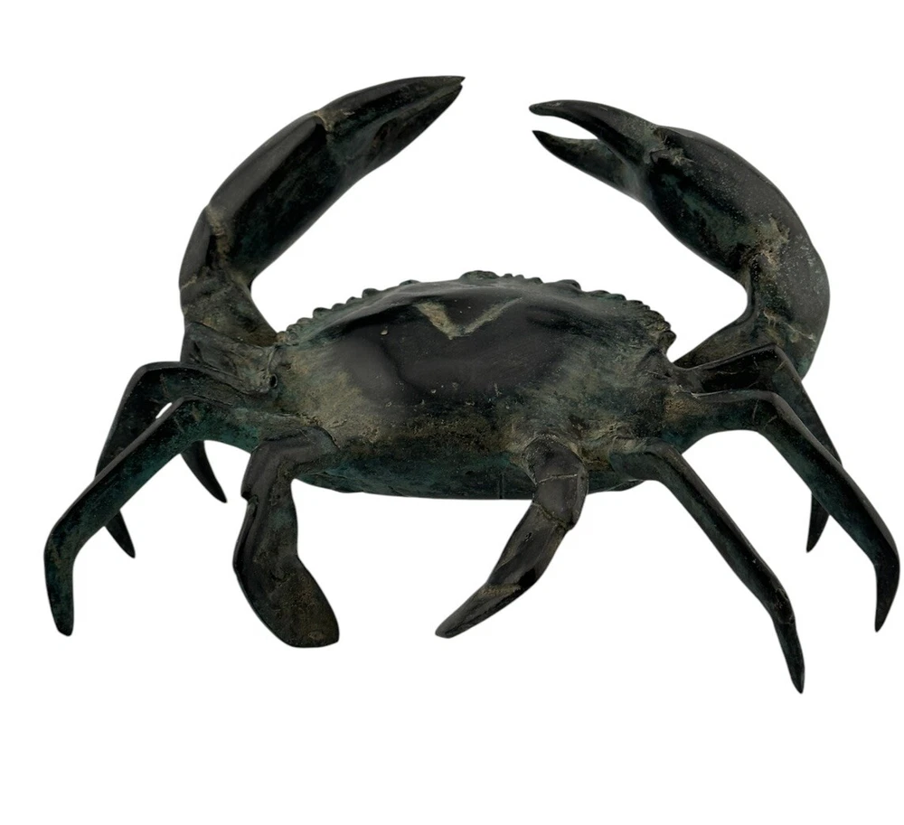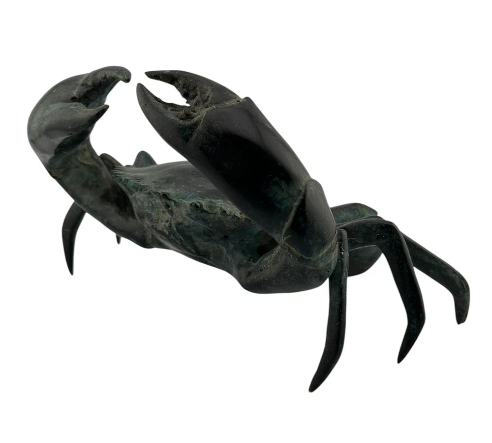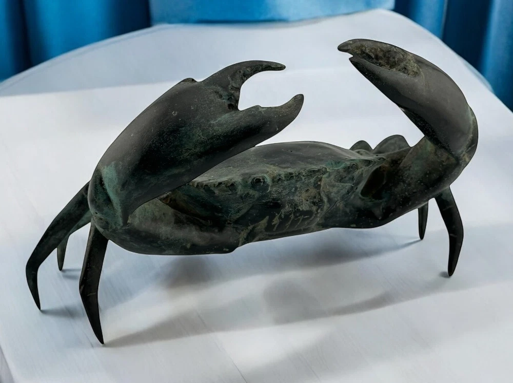 Patina Metal Crab Sculpture Figurine Sea Life Animal Creature Ocean Beach Water Approximate Dimensions: 5” tall 8” wide 5 3/4” deep