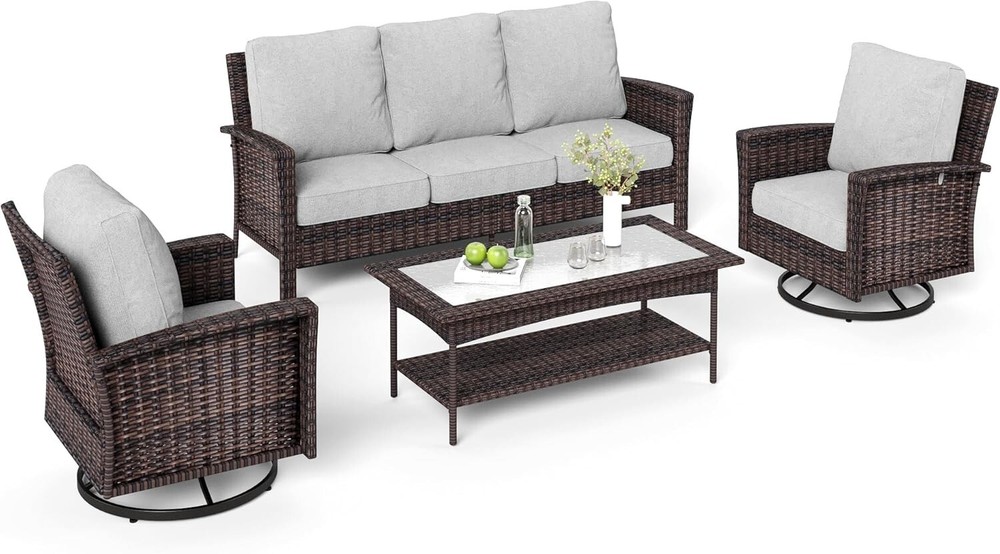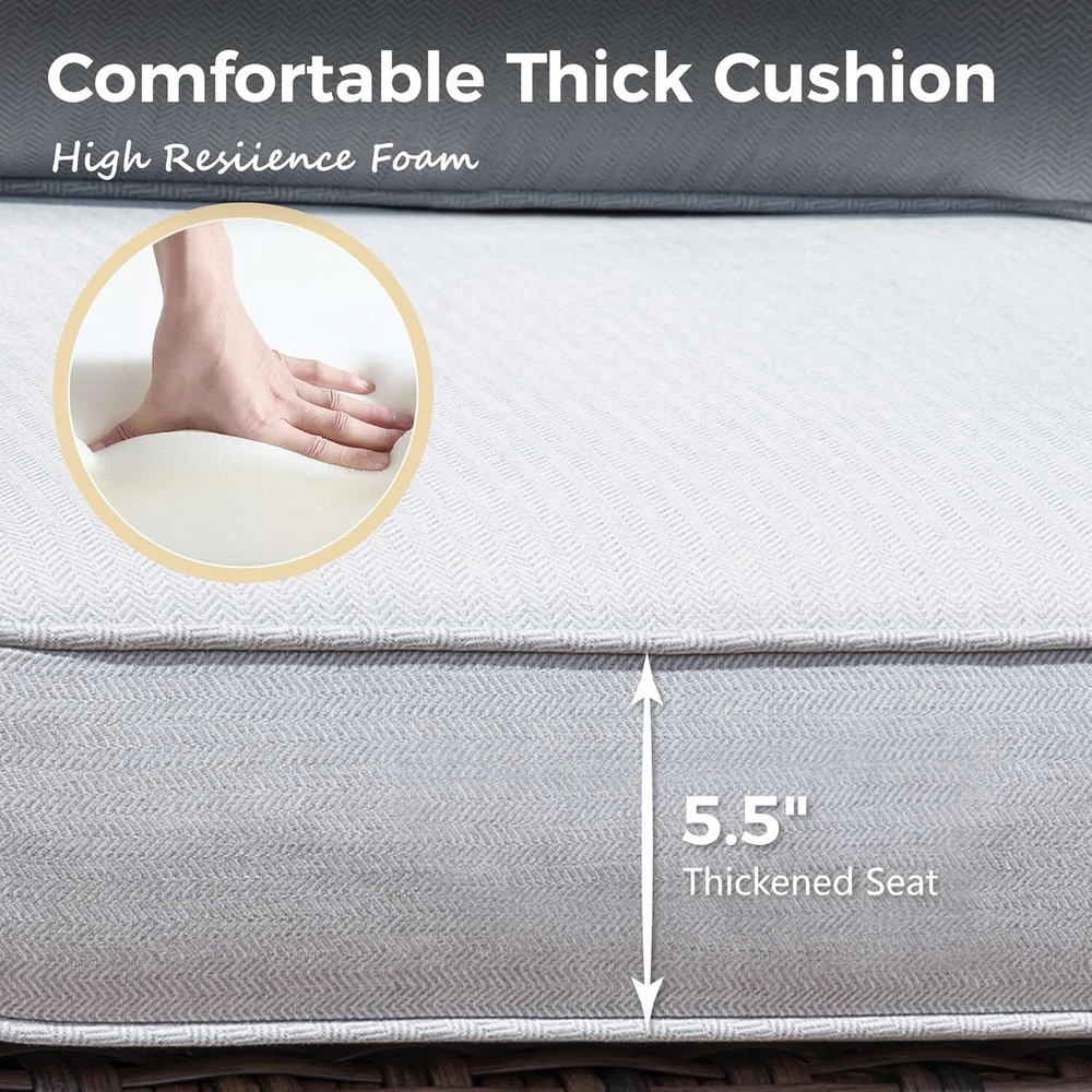 For 3: Patio Furniture Set gtin13: Does not apply Chair Height: 35 in For: Outdoor Furniture Set Chair Color: Gray Model: Rattan Furniture For 5: Patio Conversation Set Umbrella Included: No Set Includes: Cushions, ottomans, sofa Cushions Included: Yes Material: Wicker Features: Unltra Soft, Cushion Included For 4: Rattan Furniture Cushion Color: Gray Chair Back Material: Wicker Table Shape: Rectangle For 2: Outdoor Conversation Set Seating Capacity: Up to 7 Type: Wicker Furniture Table Length: 47.2 in Table Width: 23.6 in Brand: PHI VILLA Number of Items in Set: Seven-Piece Seat Depth: 24 in Style: Outdoor Furniture Year Manufactured: 2025 Color: Gray Assembly Required: Yes MPN: Does not apply Chair Width: 32.2 in Assembly Status: Part Assembled Department: Adults, Kids Manufacturer Warranty: 1 Year UPC: Does not apply