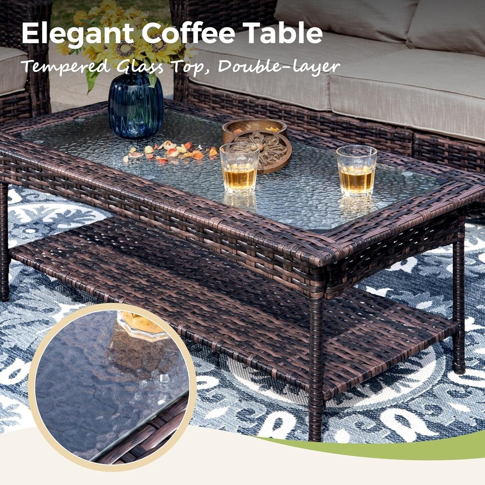 Product Description: Transform your outdoor space with our stylish Rattan Furniture. This elegant rattan sofa combines comfort and charm, making it the perfect addition to your patio or garden. Designed for relaxation, this furniture set invites you to unwind while enjoying the fresh air. The durable rattan material is not only weather-resistant but also easy to clean, ensuring that your outdoor oasis stays beautiful for years to come. Enjoy gatherings with friends and family or simply relax in style on our cozy rattan sofa. Elevate your outdoor living experience today! Feature: Made from beautifully woven rattan , this Rattan furniture combines style and durability. The natural look of the woven rattan adds a touch of elegance to your patio, garden, or balcony, making it perfect for relaxing with friends or family. The rattan frame ensures that your furniture is built to last, providing comfort for years to come. Easy to maintain and weather-resistant, our Rattan Furniture is the ideal choice for any outdoor setting. Elevate your home today with this luxurious and functional addition! Our products come with 1-year-warranty, ensuring that there will be no defects in materials and workmanship under normal use. We do our best to hear from customers and update our products. If you have more problems, please be free to contact us
