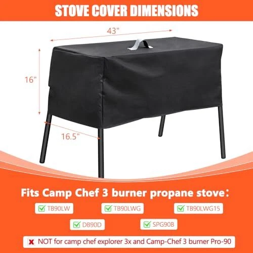 Menu 1. We require immediate payment. 2. We currently accept payment via eBay managed payments only. 3. Once payment is cleared, we will dispatch your shipment within 1-3 business days. Please refer to the "Shipping" tab for more information regarding shipping speed to your destination. Patio Cover and Carry Bag for Camp Chef 3 Burner Stoves, Tundra Pro 16, SPG90B, PRO90, TB90LWG – Heavy Duty 600D Stove Cover and Bag for Camp Chef Pro 90X Product description 【Perfect Fit for Camp Chef 3 Burner Stoves】-Our patio cover and carry bag are specially designed to fit Camp Chef 3 Burner Stoves and Tundra Pro 16, including models GB90D, TB90LW, TB90LWG, TB90LWG15, SPG90B, PRO90X. Note: Not compatible with the Explorer 3X (EX90LW). Ensure your stove is fully protected with this custom-fit solution 【Durable, Weather-Resistant Protection】 Made from heavy-duty 600D polyester, Our Camp Chef Tundra Pro Cover provides rugged protection against outdoor elements such as rain, snow, dust, and sun. Reinforced stitching ensures long-lasting durability, preventing accidental tears and making it perfect for reliable outdoor use. 【Secure & Convenient Design】Our Camp Chef 3 Burner Cover includes hook-and-loop fasteners to secure it firmly, even on windy days. An additional fabric handle at the top allows for easy removal or hanging when not in use, making it a convenient addition to your outdoor setup. 【Comfortable Wrapped Handle for Portability】 - The carry bag features a reinforced, high-quality wrapped handle, designed to evenly distribute weight and reduce hand strain. This makes transporting your Camp Chef Tundra Pro 16 or other 3-burner stoves more comfortable and portable 【Rugged Storage Design with Inner Pockets】 - Equipped with inner pockets for storing the windshield, propane burner stove legs, and barbecue tools, this bag ensures your accessories are neatly organized. The smooth, large zipper provides easy access, while reinforced corners prevent the grill box from damaging the bag during transport PLEASE MESSAGE US IF YOU HAVE ANY OTHER QUESTIONS, AND MANY THANKS FOR READING ALL OF THIS. Copyright ©#. All Rights Reserved.