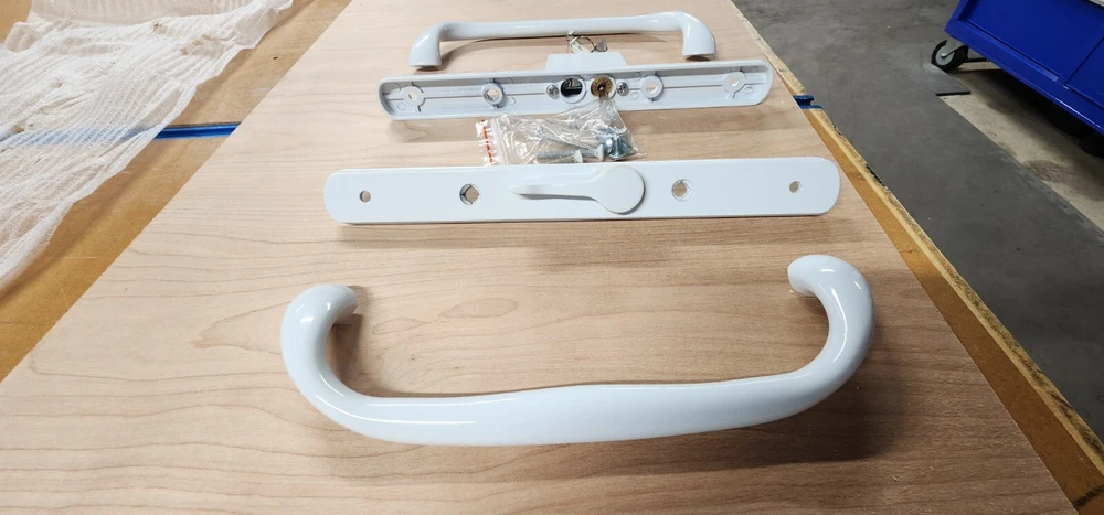 White Patio Door Handle Set with Keyed Handle Set. for Sliding Patio doors. NEW / White. This Patio Door Handle is the same one that Silverline installed on their doors.