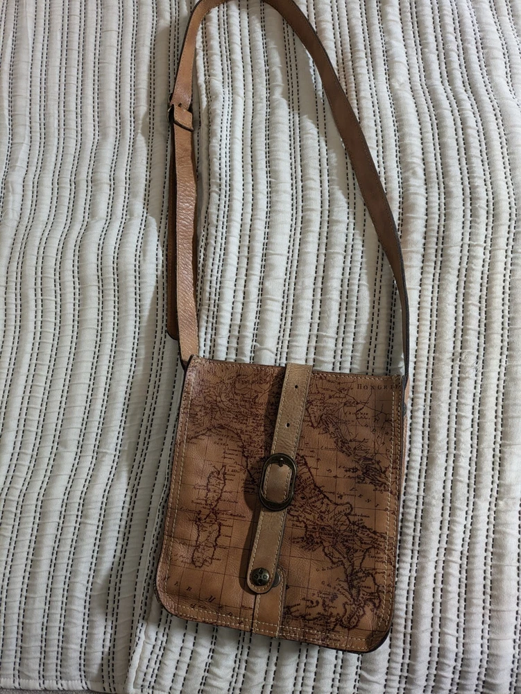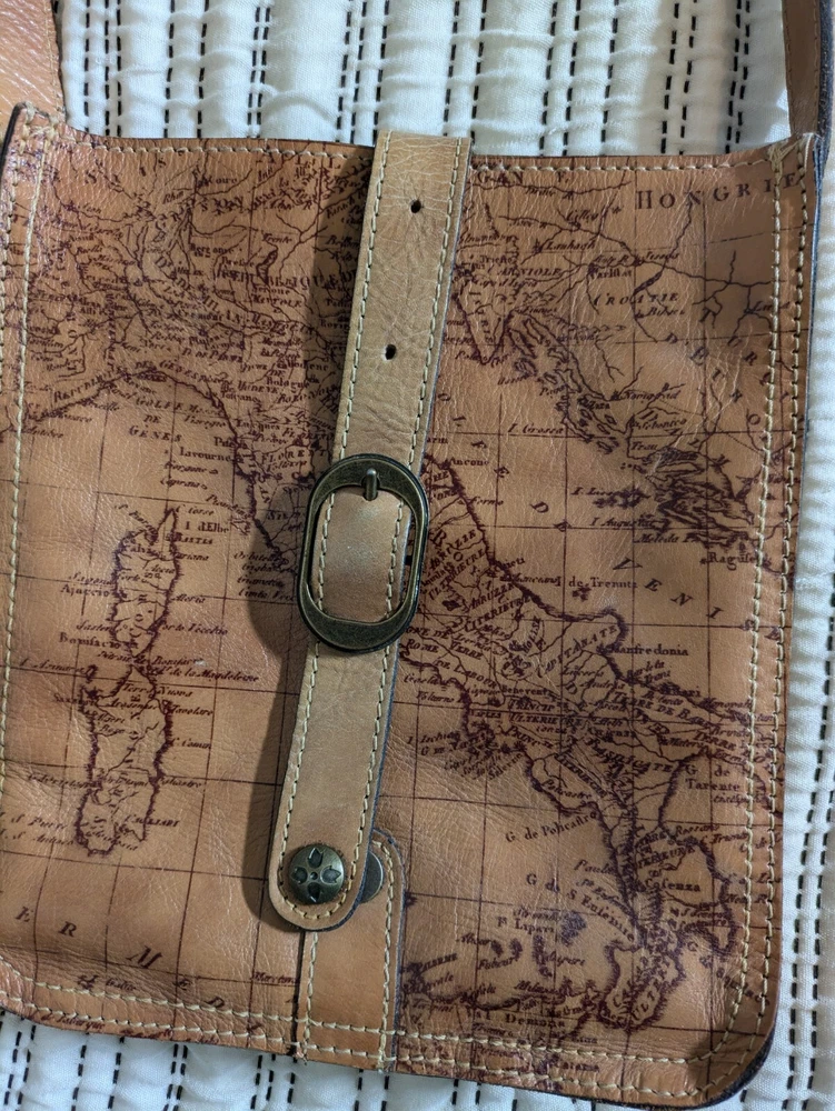 Patricia Nash leather crossbody purse Map of Italy Gently used Adjustable strap Leather Back pocket 2 slip pockets one side other side has zipper pocket L9xH10xW2 magnetic button on front to close