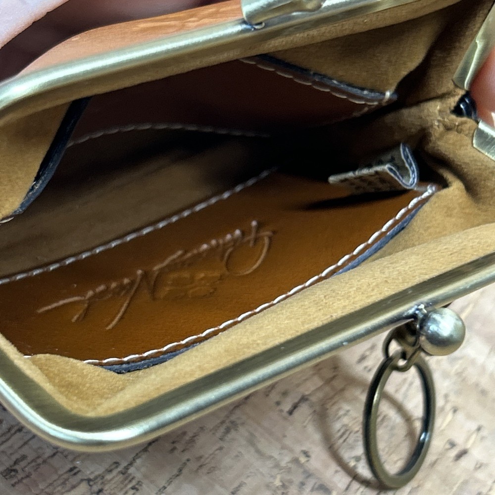 The Patricia Nash Brown Leather Coin Keychain Purse is a stylish and functional accessory for women. Made from high-quality leather, this coin wallet features a classic brown color.
