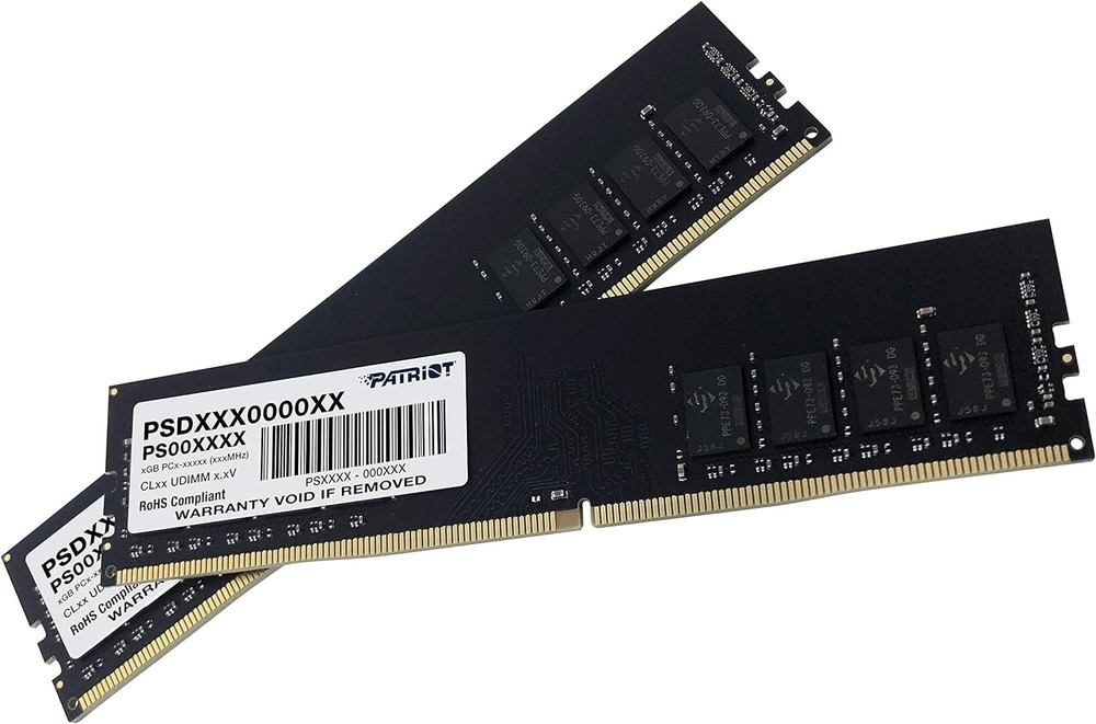 Patriot Memory Signature DDR4 8GB (2x4GB) 2666MHz (PC4-21300) Gold, Black Product Details RAM: 8 GB DDR4 Memory Speed: 2666 MHz Digital Storage Capacity: 8 GB Connectivity Technology: SATA Brand: Patriot Memory Special Feature: Lightweight Compatible Devices: Desktop Installation Type: Internal Hard Drive Color: Gold, Black Specific Uses For Product: Personal Included Components: 2 x RS-X SATA 300GB Hard Drive Cache Size: 8 8GB (2x4GB) 288-Pin unbuffered dual in-line memory module (DIMM) kit Frequency: 2666MHz (PC4-21300), Timings: 19-19-19-43, Voltage: 1.2V 100% Tested RoHS Compliant Patriot Signature Line - DDR4 - 8 GB: 2 x 4 GB - DIMM 288-PIN - ungepuffert