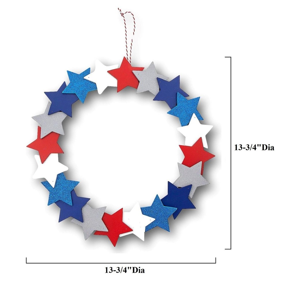 This festive star wreath is absolutely stunning! The mix of metal and wood with glittery accents gives it a charming, patriotic vibe. Perfect for Independence Day, it’s lightweight yet durable—looks amazing on my front door! The layered stars add depth, and the colors pop beautifully. Great quality for the price, and it arrived securely packaged. Love how it stays stylish from Memorial Day through summer! Definitely a must-have for patriotic decor.