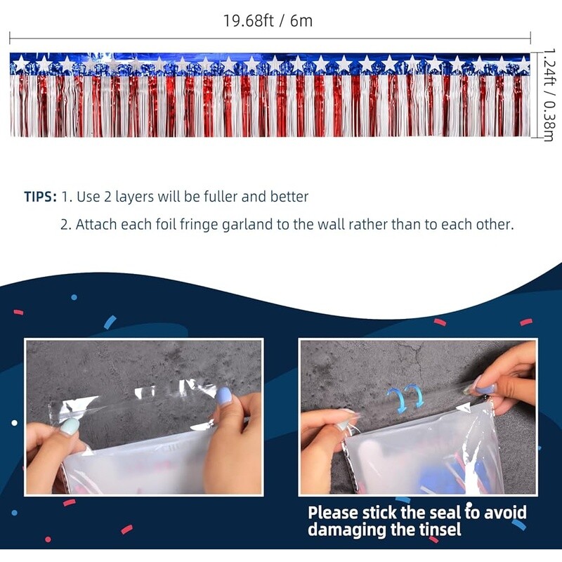 You may also like Organic Valerian Root Capsules 500mg Sleep Support Non-GMO Gluten-Free 100 Count 8.66 USD 9.21 USD Free shipping 6% off Extra Strength Vitamin D3 Softgels 125 mcg 5000 IU Bone Immune Health 250 Count 9.91 USD 10.66 USD Free shipping 7% off Turmeric Curcumin Ginger Capsules 90 Count Vegetarian Non-GMO Herbal Supplement 8.66 USD 9.21 USD Free shipping 6% off Evening Primrose Oil 1000mg Women's Health Supplement 75 Softgels GLA Balance US 9.91 USD 10.66 USD Free shipping 7% off Calcium Magnesium Zinc Vitamin D3 Supplements Bone Muscle Health 250 Caplets New 9.47 USD 10.18 USD Free shipping 7% off Extra Strength B12 Fast Dissolve Tablets Metabolism Support 5000 mcg 45 Count US 8.66 USD 9.21 USD Free shipping 6% off Haunted House Cookie Jar Halloween Party Prop Spooky Food Storage Container New 17.97 USD 19.32 USD Free shipping 7% off Grape Cutter for Toddlers, Grape Slicer for Baby, Grape Cherry Tomato Slicer 5.35 USD 5.69 USD Free shipping 6% off Calcium Vitamin D Supplement 600mg Bone Health Support Tablets 250 Count New 8.92 USD 9.49 USD Free shipping 6% off Hypoallergenic Liquid Laundry Detergent Unscented Dermatologist Tested 115 Loads 14.37 USD 15.45 USD Free shipping 7% off L-Arginine Amino Acid Capsules 500mg Heart Health Support 100 Count Gluten Free 9.91 USD 10.66 USD Free shipping 7% off Vitamin B12 Quick-Dissolve Tablets Dietary Supplement, 2,500 Mcg, Cherry, 120 Ct 11.85 USD 12.74 USD Free shipping 7% off About this item Aluminum Foil PACKAGE INCLUDES: 2 Packs red white and blue star foil fringe garland / metallic tassel banner, each garland is 1. 24 feet wide * 19. 68 feet long, perfect 4th of July decorations. EASY TO INSTALL: Metallic foil fringe garland has double stick tape at the back for easy mounting and removal. It can be easily cut into any size as well. HIGH-QUALITY FUNCTION: High-quality metal foil tassel garland, lightweight, easy to use, bright color, can create a strong festive and fun atmosphere. APPLICABLE OCCASIONS: Suitable for all kinds of activities, such as parade floats, table skirts, weddings, carnivals, graduation parties, classroom decorations, stage skirting, Christmas, Halloween, dance, photography background, etc. FESTIVE AND FUN: These 4th of July foil streamers are the finishing touch for any themed party such as Memorial Day Party, US Flag Day, Independence Day party, Veterans Day party, Election party, Labor Day party, or wedding party decorations. › Color: Red White and Blue Star Material: Aluminum Included Components: 2 Pack Ceiling Tinsel Fringe Unit Count: 2. 0 Count Brand: Sinex Severe Nasal Spray 12hr Relief Congestion Sinus Pressure 265 Sprays New 14.35 USD 15.43 USD Free shipping 7% off Sugar Free Fiber Gummies Prebiotic Digestive Support 90 Count Adult Supplements 20.34 USD Free shipping Epinephrine Inhaler 0.125mg Aerosol Asthma Relief FDA Approved OTC MIST New 34.74 USD 37.35 USD Free shipping 7% off Professional Tool Set Wrenches Ratchets Sockets Screwdrivers Pliers Hammer Case 90.99 USD Free shipping Heavy Duty Alloy Steel Lockbox Secure Storage Compatible W/ 1 Inch Cylinder Lock 49.33 USD 53.04 USD Free shipping 7% off Durable Tool Box Set W/ Removable Compartments Easy Access Lockable Storage New 38.67 USD 41.58 USD Free shipping 7% off 3-in-1 Tool Box Organizer W/ Removable Tray Tools Storage & Organization New 64.05 USD 68.87 USD Free shipping 7% off Portable Tool Kit W/ Cordless Drill 238 Piece Tool Set Home Repair Organizer New 87.03 USD 93.58 USD Free shipping 7% off 8V Cordless Drill Set W/ 10 Drill Bits LED Light Rechargeable Battery DIY Tools 72.52 USD 77.98 USD Free shipping 7% off Mini Metal Toolbox Storage Organizer 2 Drawers Well-Designed Accessories New 48.34 USD 51.98 USD Free shipping 7% off 148 Piece Tool Kit Home Repair Set Corrosion Resistant DIY Storage Case New 42.3 USD 45.48 USD Free shipping 7% off Durable Folding Tool Storage Box W/ Three-Tier Tray & Tough Metal Latches New 38.67 USD 41.58 USD Free shipping 7% off