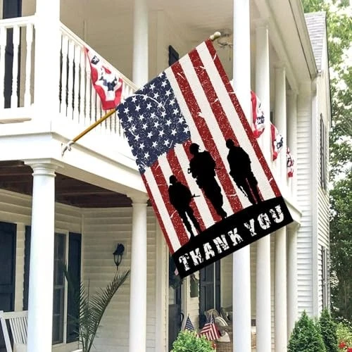 Return Policy Fast Delivery Trusted seller Patriotic American Soldier Thank You House Flag 28x40 Inch Burlap Double Sided 4th of July Independence Day Memorial Day Yard Outdoor Decor USA Flags DF454-28 Product Description PACKAGE :ONLY 1PC PATRIOTIC DAY HOUSE FLAG (flagpole is not included). house flag size (28 x 40"), sleeve hanger fits standard flagpole. DOUBLE SIDED: Design is double sided with the image printed and visible from both sides and text also reads correctly from both sides. PREMIUM QUALITY MATERIAL: Made of premium quality burlap looking machine washable Spun Polyester, which is weather resistant as well as UV / fade-resistant. High-strength double stitching ensures durability. Wide Application: Welcome guests to your home with this unique, seasonal flag. Perfect for any deck, patio, porch or veranda and make charming decorative statements for any backyard, lawn or garden. RISK FREE GUARANTEE: Each flag brightly colored, fade resistant, extra soft and extra durable for lasting enjoyment. AND we offer 60 days money-back warranty and 24/7 customer support give you the best shopping experience ever. Shipping Returns Payment Shipping Shipping is FREE to all addresses other than APO/PO boxes in the lower 48 states. All our stock ships from US-based warehouses. Shipped via USPS or UPS (depending on location and package weight) Unless stated otherwise, all orders will ship within 24-72 hours of your payment being processed. Check our feedback to see the great reviews of FAST shipping we offer. Returns Seller does not accept returns Payment We currently accept payment via eBay managed payments only. Once payment is cleared, we will dispatch your shipment within 1-3 business days. Please refer to the "Shipping" tab for more information regarding shipping speed to your destination.